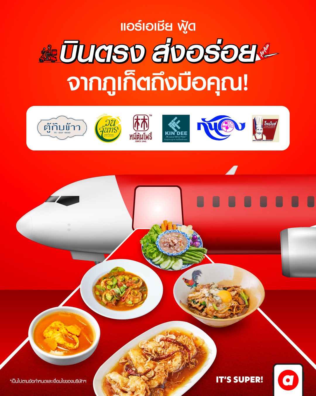 ลูกค้าสามารถชิมรสชาติของอาหารจากร้านดังระดับตำนานในภูเก็ตได้ด้วย “บริการบินตรงส่งความอร่อย” จาก airasia food ที่จะจัดส่งผ่านเที่ยวบินของสายการบินที่กำหนดไว้ในแต่ละรอบการสั่งซื้อ พร้อมบริการจัดส่งแบบควบคุมอุณหภูมิที่รวดเร็ว ทำให้ลูกค้าสามารถมั่นใจในคุณภาพความอร่อยเหมือนยกครัวจากภูเก็ต มาส่งถึงมือลูกค้าในจังหวัด กรุงเทพและนนทบุรี ให้ลูกค้าได้สัมผัสรสชาติต้นตำรับโดยไม่ต้องบินไปกินด้วยตัวเอง เพียงลูกค้าสั่งอาหารได้ทุกวันก่อนวันศุกร์เวลา 20.00 น. และได้รับอาหารช่วงเย็นวันเสาร์เวลา 18.00 – 19.00 น. ผ่านแอปพลิเคชั่น airasia Super App