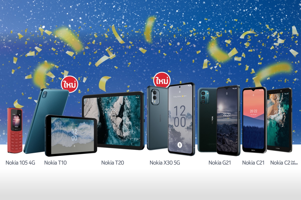 NOKIA อัดแคมเปญ 12.12 โปรโมชัน มอบของขวัญพิเศษ รุกหนักตลาดออนไลน์โค้งสุดท้ายของปี อยู่ที่ไหนก็ชอปได้ 24 ชั่วโมง ลดสูงสุด 60% พร้อมผ่อน 0% สูงสุด 10 เดือน นำทัพด้วยโนเกียรักษ์โลกรุ่นล่าสุด Nokia X30 5G มาพร้อมส่วนลดสูงสุดกว่า 2,000 บาท พร้อมสมาร์ทโฟนรุ่น Nokia C2 2nd Edition, Nokia C10, Nokia C21, Nokia G20 และ Nokia G21 ฟีเจอร์โฟนรุ่น Nokia 105 4G และแท็บเล็ตรุ่นใหม่ Nokia T20 ตั้งแต่วันที่ 12 – 15 ธ.ค. นี้ จัดหนักของแถมเอ็กซ์คลูซีฟจำนวนจำกัด รวมมูลค่าสูงสุดกว่า 3,920 บาท คว้าโอกาสกำลังซื้อฟื้นตัว ผู้บริโภคต้องการเปลี่ยนโทรศัพท์มือถือใหม่ หรือมอบเป็นของขวัญพิเศษส่งท้ายปี โดยเฉพาะผู้บริโภคกลุ่มครอบครัว