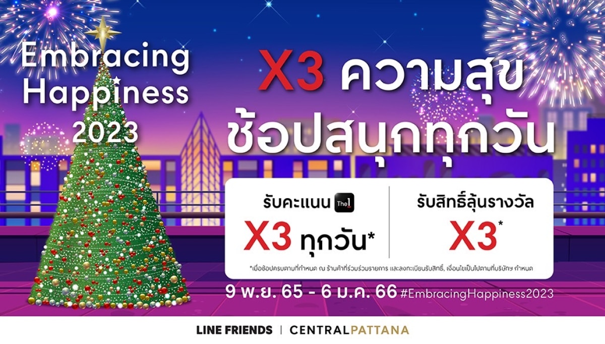 ในช่วงปลายปี The 1 ยังมอบความสุขผ่านแคมเปญ Embracing Happiness 2023 ให้กับสมาชิก The 1 รับคะแนน X3 ทุกวัน ทุกบิล และรับสิทธิ์ลุ้นรับรางวัลใหญ่ X3 อาทิ รถยนต์ HAVAL JOLION รุ่น ULTRA และตั๋วโดยสารไป – กลับภายในประเทศ 2 ที่นั่ง จากสายการบิน Nok Air เมื่อใช้จ่ายกับร้านค้าที่เป็นแบรนด์พาร์ทเนอร์ The 1 Biz หรือชอปกับร้านค้าที่ร่วมรายการและลงทะเบียนในทุกศูนย์การค้าเซ็นทรัลรวม 38 สาขาทั่วประเทศ (จำกัดการรับแลกคะแนนเพิ่มสูงสุด 20,000 คะแนนต่อหมายเลขสมาชิก The 1 ตลอดรายการ ระหว่าง วันที่ 9 พฤศจิกายน 2565 – 6 มกราคม 2566 นี้เท่านั้น)