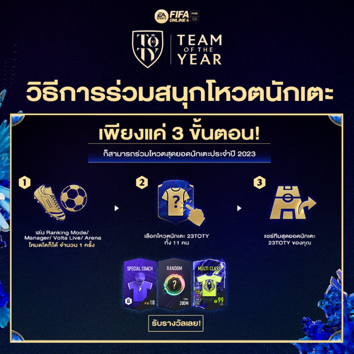 FIFA Online 4 ชวนร่วมกิจกรรมโหวต นักเตะยอดเยี่ยมแห่งปี ‘TEAM OF THE YEAR’ ประจำปี 2023 ร่วมลงคะแนนได้แล้วตั้งแต่วันนี้ – 17 ม.ค. 2023