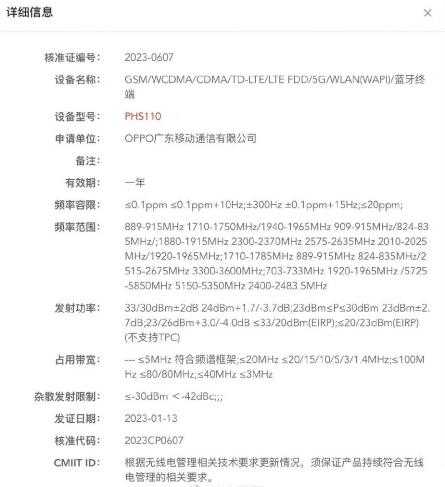 ตามรายงานเผยว่ามีการค้นพบสมาร์ทโฟนของ OPPO พร้อมหมายเลขรุ่น PGFM10 และ PGEM10 ที่ได้รับการรับรองโดยหน่วยงาน CMIIT ในประเทศจีน ซึ่งก็มีการคาดเดากันอุปกรณ์เหล่านี้จะเปิดตัวภายใต้ชื่อว่า Find X6 และ Find X6 Pro รวมถึงยังมีการอนุมัติสมาร์ทโฟนรุ่นใหม่ของซีรีส์ Find X6 พร้อมหมายเลขรุ่น PHS110 ด้วย