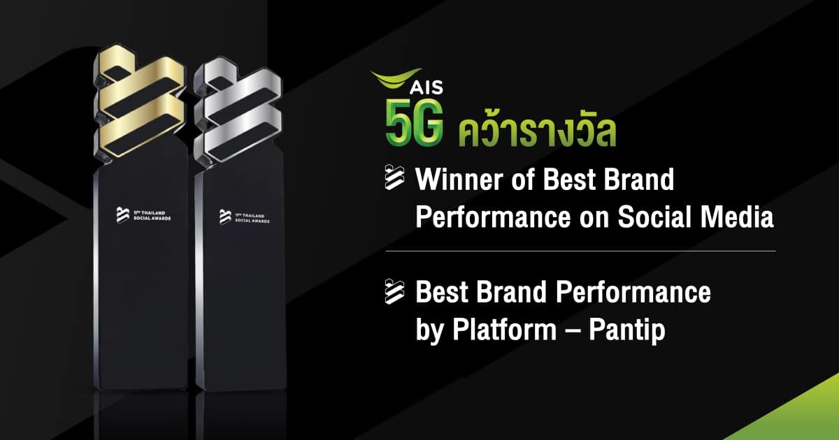 AIS ยังคงยืนหนึ่งในฐานะแบรนด์ที่ทำผลงานบนช่องทางโซเชียลมีเดียได้อย่างยอดเยี่ยม ด้วยการคว้าถึง 2 รางวัล จากเวที THAILAND SOCIAL AWARDS 2023 ประกอบไปด้วย รางวัล Winner of Best Brand Performance on Social Media สาขากลุ่มธุรกิจโทรคมนาคม 6 ปีซ้อน และ รางวัล Best Brand Performance by Platform – Pantip ตอกย้ำความเชื่อและวิสัยทัศน์ของ AIS ที่มุ่งมั่นตั้งใจในการพัฒนาโครงข่ายสื่อสาร 5G ผ่านบริการดิจิทัลที่ตอบโจทย์กับดิจิทัลไลฟ์สไตล์ รวมถึงยังเป็นแบรนด์ที่พร้อมช่วยเหลือดูแลลูกค้าในทุกช่องทาง โดยเฉพาะในช่องทางโซเชียลมีเดียที่วันนี้ AIS ไม่ได้มองเป็นเพียงแค่ช่องทางในการสื่อสารกับลูกค้า แต่เป็นพื้นที่ในการรับฟังเพื่อนำข้อมูลไปปรับปรุงพัฒนาคุณภาพบริการให้ดีมากยิ่งขึ้น