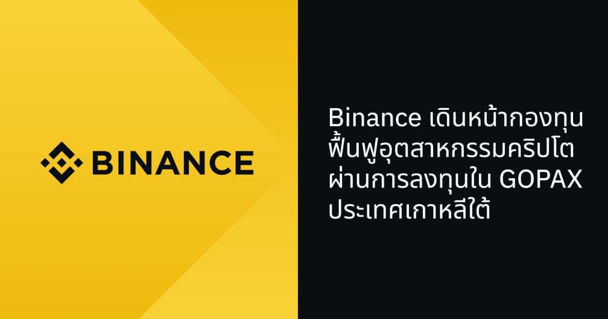 Binance เดินหน้าอัดฉีดเงินทุน Industry Recovery Initiative กองทุนฟื้นฟูอุตสาหกรรมคริปโต ผ่านการลงทุนใน GOPAX ประเทศเกาหลีใต้