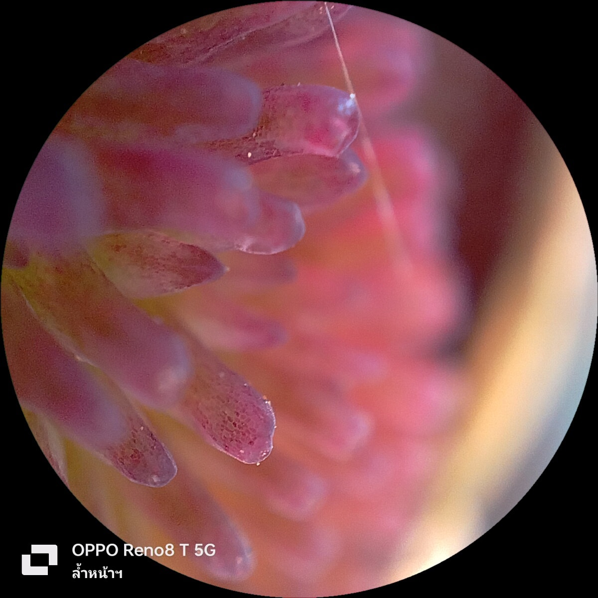 กล้อง Microlens 40x : เพิ่มลูกเล่นของกล้อง ถ้าใครยังจำกันได้ กล้อง Microlens 40x ตัวนี้เป็นตัวเดียวกันที่มีอยู่ในสมาร์ตโฟนรุ่นแฟลกชิปอย่าง OPPO Find X3 Pro คุณสมบัติคือการถ่ายภาพในระยะใกล้แบบกล้องจุลทรรศน์ ด้วยกำลังขยายที่เลือกได้ที่ 20 เท่า และ 40 เท่า พร้อมกับมีไฟ LED ส่องสว่างที่ช่วยให้การถ่ายแบบใกล้ๆ ยังสว่างและเห็นรายละเอียดที่ขยายขึ้นมาได้อย่างน่าทึ่ง ช่วยให้คุณสามารถใช้กล้องถ่ายเก็บภาพรายละเอียดเล็กจิ๋วของสิ่งต่างๆ รอบข้างได้อย่างน่าอัศจรรย์ ไม่ว่าจะเป็นเกสรดอกไม้, ลวดลายของผ้า, เม็ดพิกเซลบนจอทีวี ฯลฯ โดยภาพที่ได้จะเป็นขนาด 1.4MP