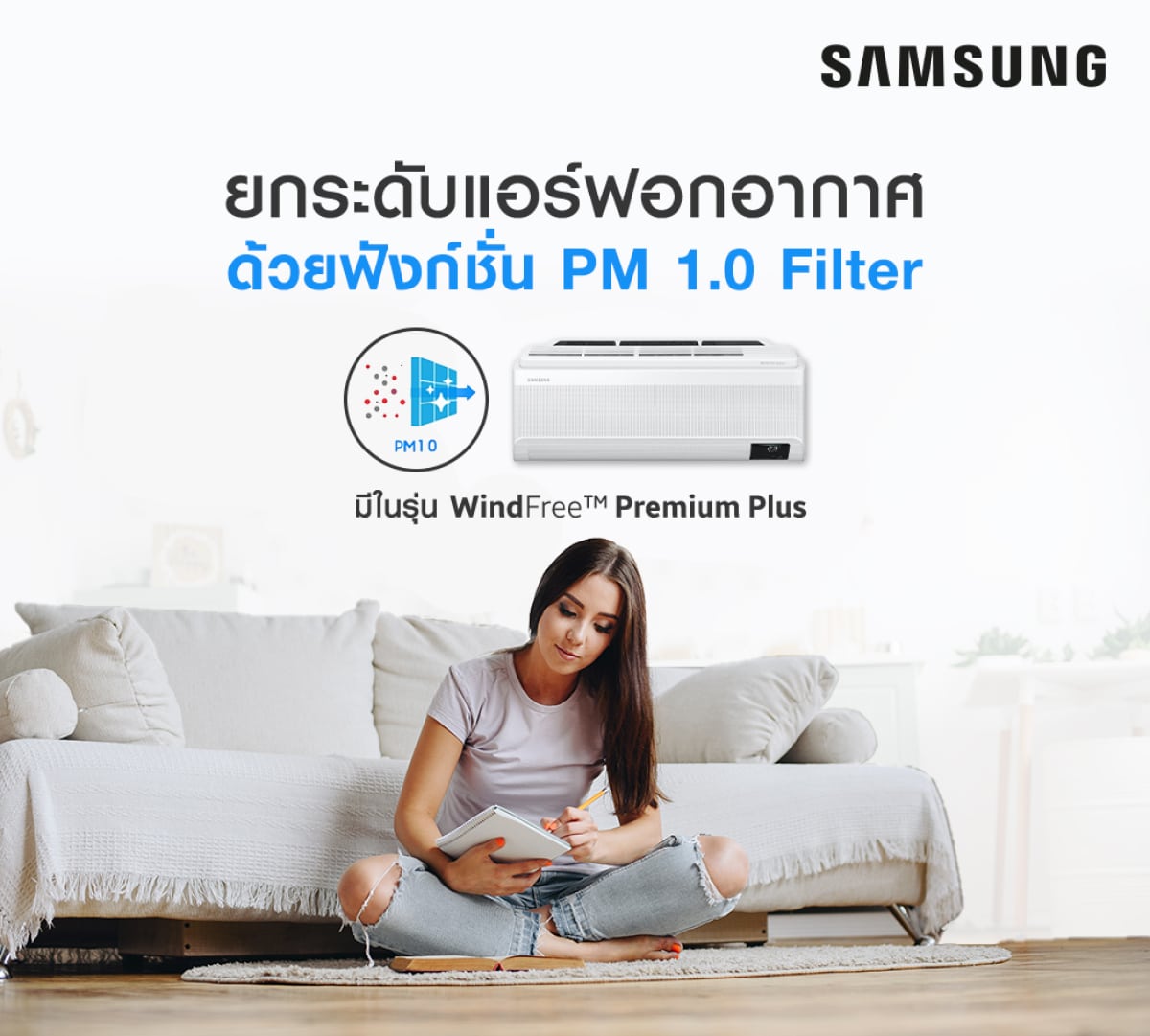 การดูแลสุขภาพภายในบ้านก็เป็นเรื่องที่จำเป็นอย่างยิ่ง หากค่าฝุ่นสูงกว่ามาตรฐานควรปิดประตูหน้าต่าง เพื่อป้องกันฝุ่นละอองขนาดเล็ก ในขณะเดียวกัน การเลือกเครื่องปรับอากาศที่สามารถกรอง PM 2.5 ได้ในเครื่องเดียว อย่างเครื่องปรับอากาศ Samsung ที่มาพร้อมเทคโนโลยี WindFree™ Cooling เย็นฉ่ำ… เย็นสบาย…ลมไม่ปะทะตัว เป็นนวัตกรรมความเย็นสบายที่ลมไม่ปะทะตัว ช่วยกระจายลมได้อย่างนุ่มนวลและเงียบผ่านรูขนาดเล็ก 23,000 รู ทำให้ไม่รู้สึกหนาวจากลมเย็นที่มากระทบผิวอีกต่อไป และยังมี PM 1.0 Filter System สามารถฟอกอากาศได้อย่างละเอียดถึงฝุ่นจิ๋ว PM 1.0 ที่อันตรายกว่า PM 2.5 เพราะมีอนุภาคขนาดเล็กสามารถซึมทะลุถุงลมปอดเข้าไปในเส้นเลือดที่ไปเลี้ยงหัวใจและสมอง ก่อเป็นปัจจัยที่เพิ่มความเสี่ยงต่อการเกิดโรคต่าง ๆ ให้ชัดเจนและรวดเร็วยิ่งขึ้น ด้วยแผ่นกรองอากาศ PM 1.0 ที่สามารถดักจับฝุ่นขนาดเล็กจิ๋วช่วยทำให้อากาศภายในห้องสะอาดได้อย่างรวดเร็ว พร้อมทั้งยังสามารถถอดล้างทำความสะอาดได้ตลอดอายุการใช้งาน ช่วยประหยัดเรื่องค่าใช้จ่ายในการซื้อแผ่นกรองอากาศ เหมาะสำหรับครอบครัวที่มีสมาชิกหลากหลายช่วงอายุและคนที่เป็นภูมิแพ้ ซึ่งเทคโนโลยีนี้จะมีในเครื่องปรับอากาศซัมซุงแบบติดผนังรุ่น WindFree™ Premium Plus หรือแบบติดฝ้าเพดาน (CAC) รุ่น WindFree™ 1Way Cassette, WindFree™ 4Way Cassette และ 360 Cassette