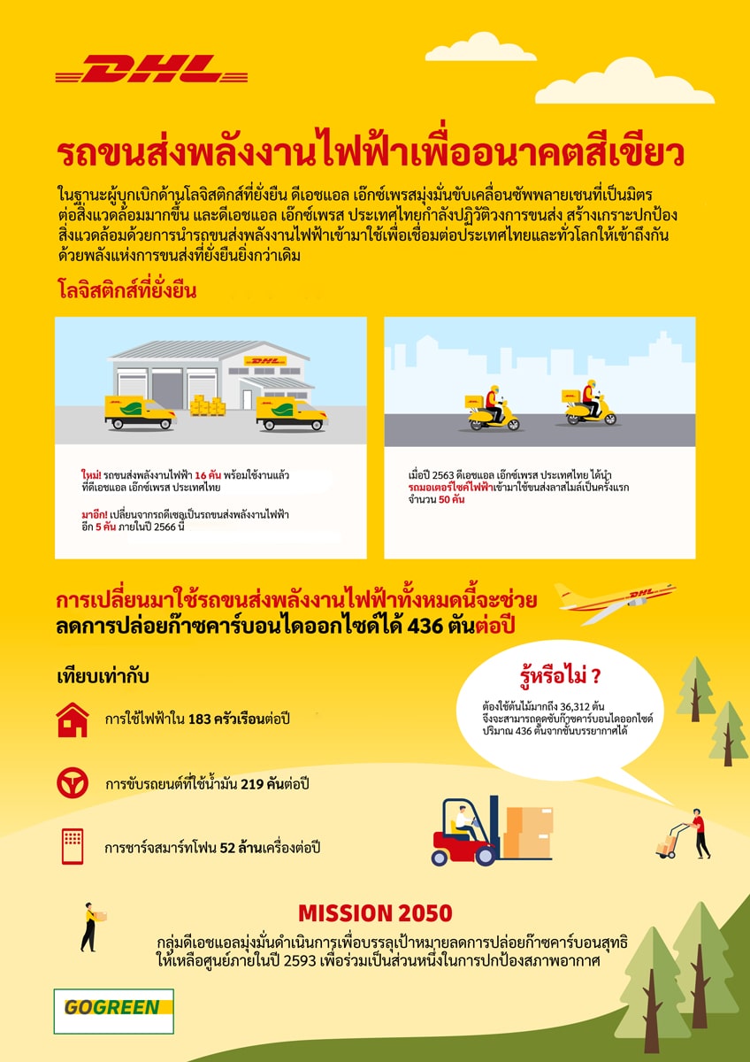 DHL Express คือผู้ให้บริการลอจิสติกส์รายแรกในไทย ที่เปลี่ยนมาใช้ยานยนต์ไฟฟ้า EV ในเชิงพาณิชย์อย่างเต็มรูปแบบ