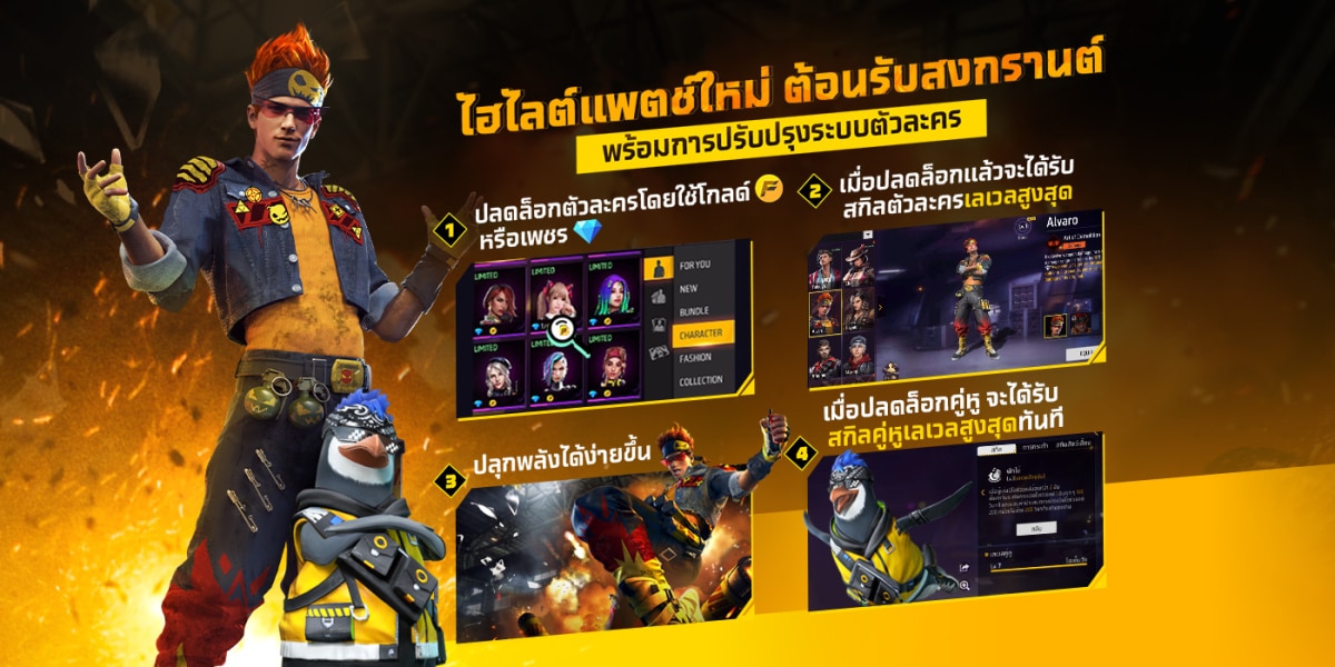 กิจกรรมสุดพิเศษ ที่เหล่าผู้เล่น Free Fire ตัวจริง ต้องห้ามพลาด!! เพียงล็อกอินเข้าเกม Free Fire ก็รับทันทีกับโทเคนที่ใช้เพื่อปลุกพลังให้แก่ตัวละครอัลวาโร ยัง! แค่นี้ยังไม่พอ ตลอดช่วงเวลาของกิจกรรม ผู้เล่นสามารถทำภารกิจสุดเดือดรับของรางวัล ฟรี! ระเบิดความมันส์ เตรียมความพร้อมให้ดีก่อนสงกรานต์นี้