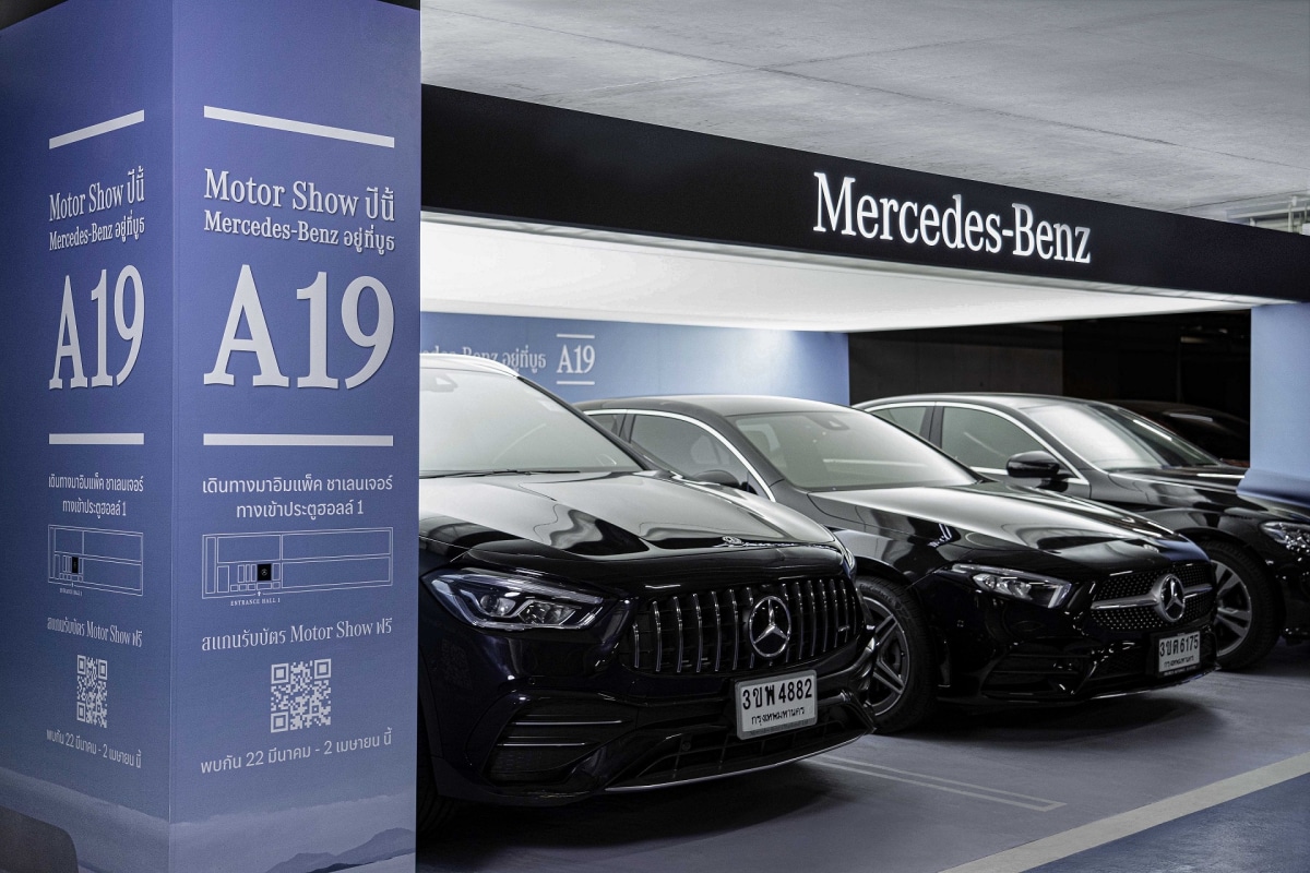 Mercedes-Benz สุดครีเอท จัด Pop-up Motor Show ที่เสา A19 บนลานจอดรถห้างดัง ชี้พิกัดหมายเลขตำแหน่งใหม่ของบูธในงานมอเตอร์โชว์ปีนี้