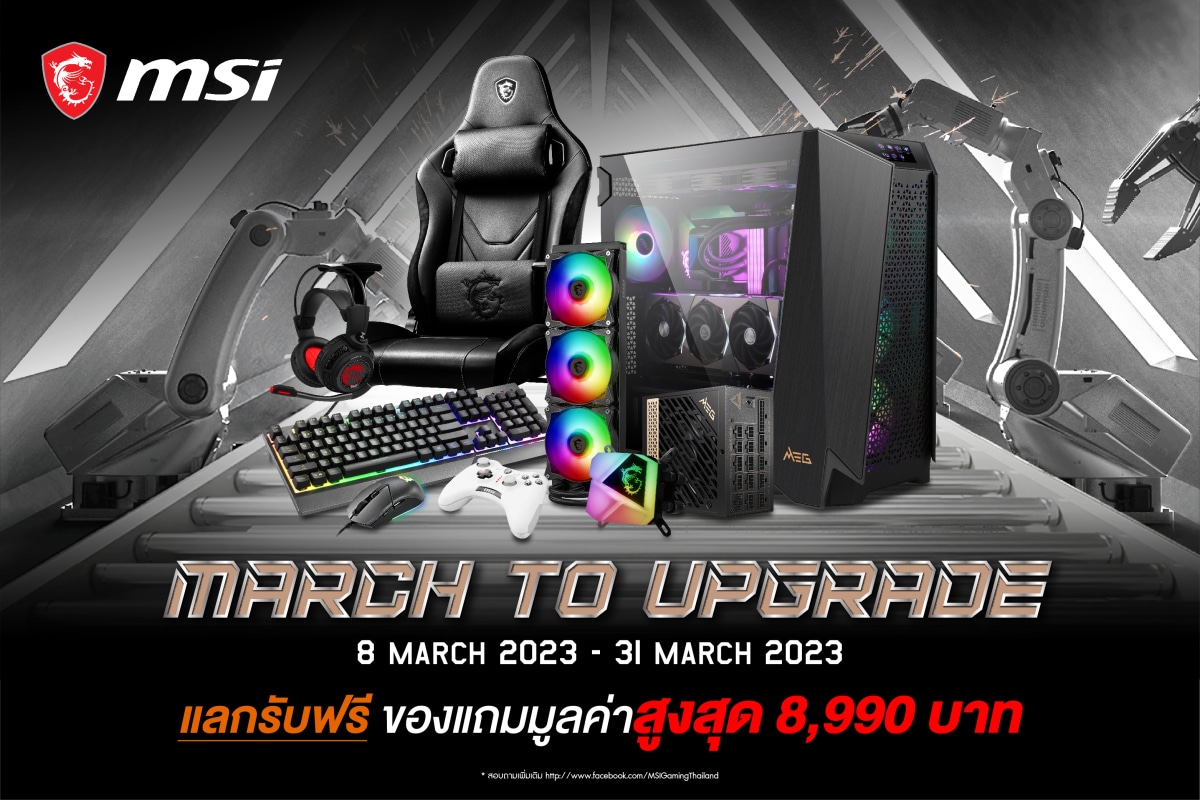 MSI MARCH TO UPGRADE โปรโมชัน จัดหนักสุดพิเศษประจำเดือนมีนาคม 2566 แลกรับฟรีของแถมมูลค่าสูงสุด 8,990 บาท สำหรับลูกค้าที่ซื้อสินค้าระหว่าง 8 – 31 มี.ค. เท่านั้น