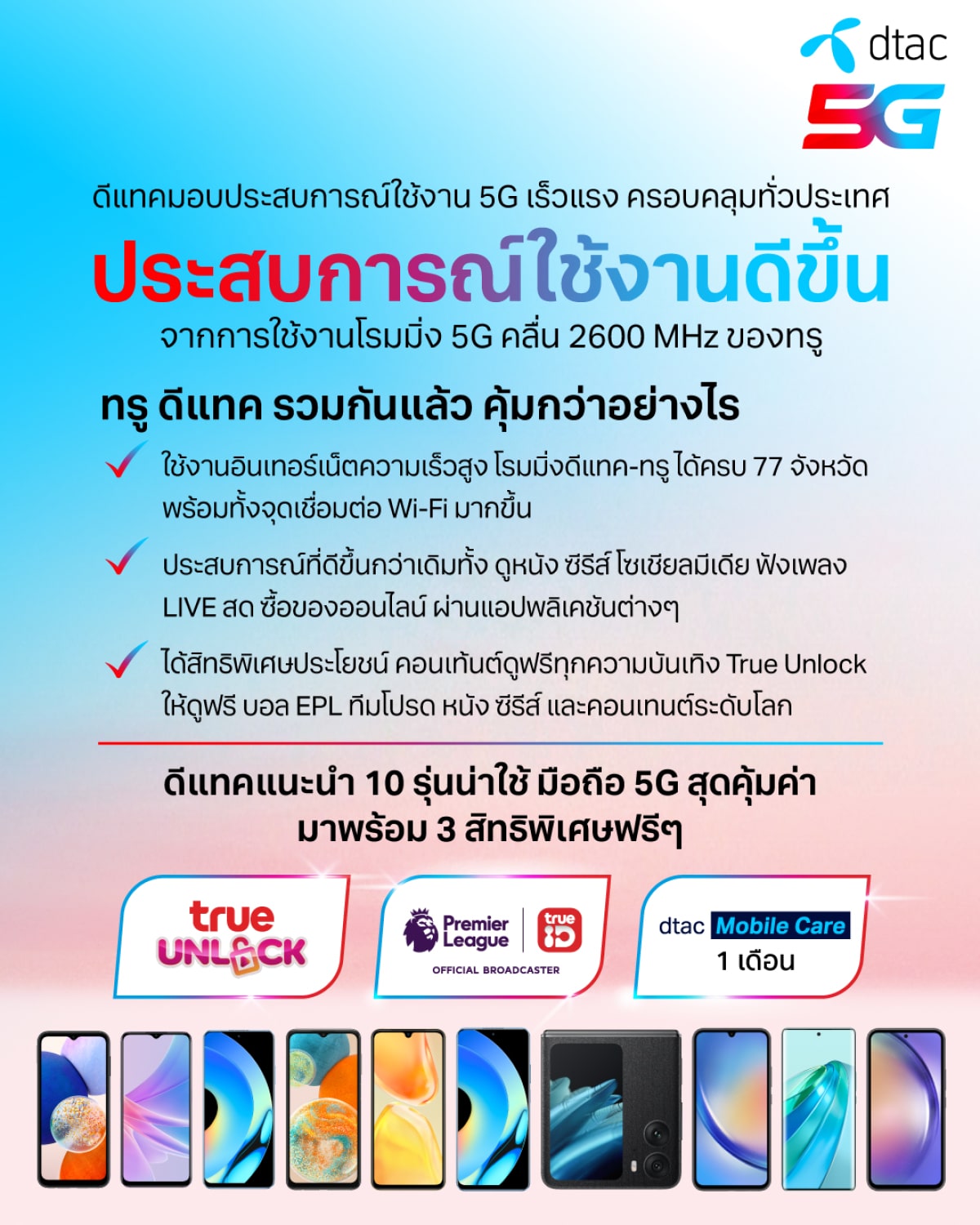 dtac เสนอ 10 สมาร์ทโฟน 5G สุดคุ้มที่ลดแรง แซงทุกโปร มอบความคุ้มค่าที่เหนือชั้น เพียงย้ายค่ายมาอยู่กับดีแทคเพื่อชีวิตที่ดีกว่า