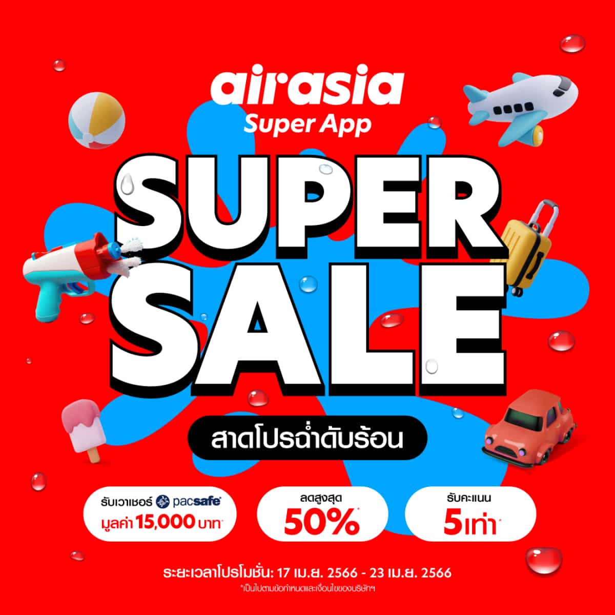 สาด โปร ฉ่ำดับร้อนกับ Super App Super Sale แจกจัดหนักประจำเดือนเมษายน ลดสูงสุด 50% และรับ airasia points 5 เท่า พร้อมบัตรกำนัลของขวัญจาก Pacsafe มูลค่า 15,000 บาท