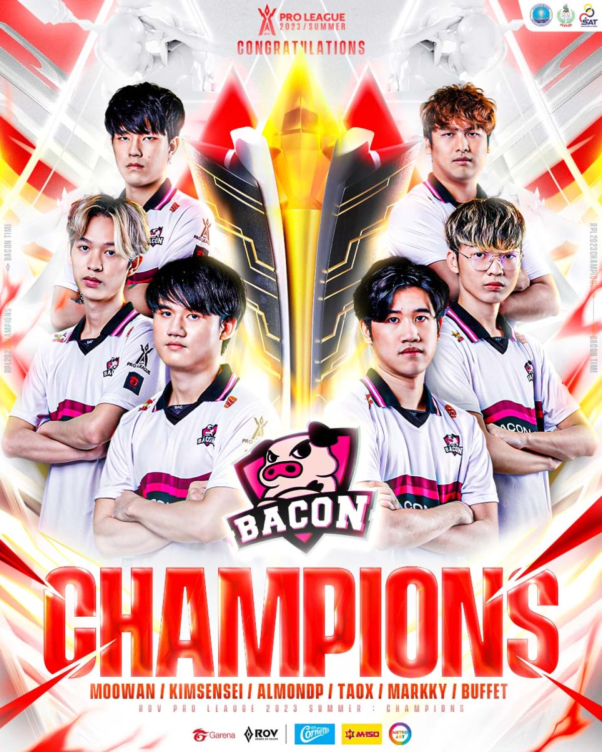 Bacon Time ครองบังลังก์ แชมป์ RoV Pro League 2023 Summer เป็นสมัยที่ 5 และเป็นฤดูกาลที่ 2 ติดต่อกัน พร้อมรับเงินรางวัล 6,000,000 บาท