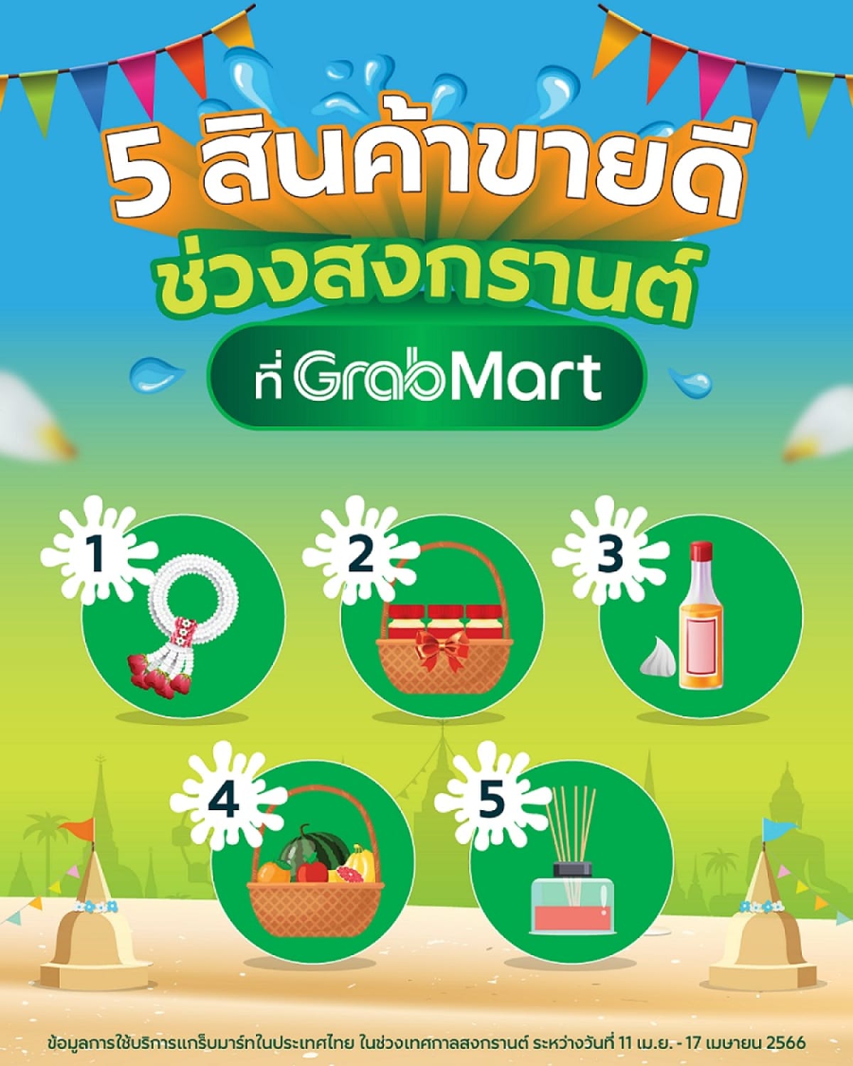 GrabMart เผย 5 สินค้าขายดีช่วง สงกรานต์ พร้อมชวนชอปไอเทมดีลเด็ดดับร้อน จัดเต็มส่วนลด มุ่งกระตุ้นตลาดตลอดเดือนเมษายน 2566
