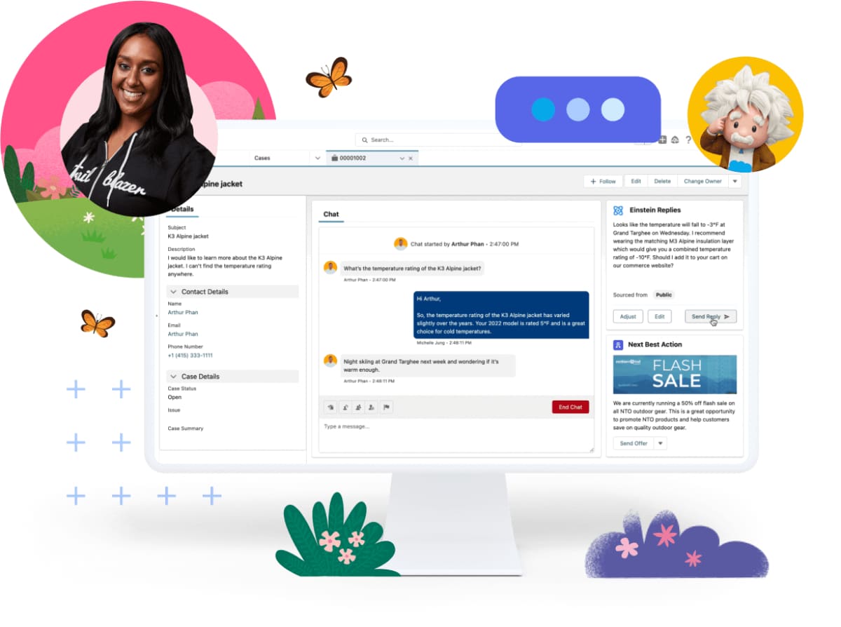 Einstein GPT for Service: ตัวช่วย AI ด้านงานบริการ โดยสามารถสร้างเอกสารข้อมูลโดยอ้างอิงข้อมูลจากเคสที่ผ่านมา สร้างข้อความตอบกลับอัตโนมัติที่มีเนื้อความเฉพาะบุคคลสำหรับ chat agent เพื่อเสริมความประทับใจให้ลูกค้าที่มากยิ่งขึ้นผ่านบริการโต้ตอบที่รวดเร็ว สะดวก และเป็นส่วนตัว