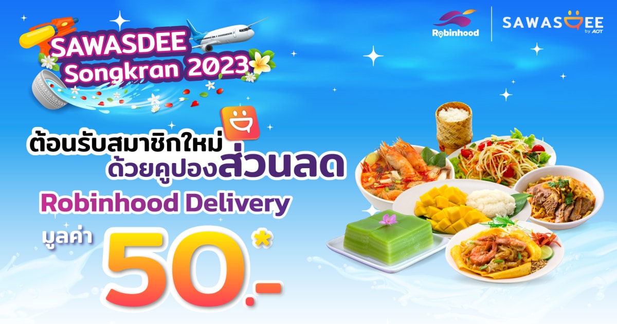 SAWASDEE by AOT จับมือ Robinhood มอบ โค้ดส่วนลด ทันที 50 บาทเฉพาะผู้ใช้งานใหม่ เพียงดาวน์โหลดและลงทะเบียนแอปพลิเคชันครั้งแรก ตั้งแต่ 1 – 30 เม.ย. นี้เท่านั้น!