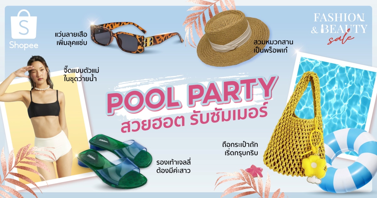 ซัมเมอร์นี้ต้องไม่พลาด POOL PARTY แช่น้ำจิบค็อกเทลคลายร้อนแบบตัวแม่ ชวนแก๊งเพื่อนสาวสวยสับถ่ายรูปปัง ๆ ขาดไม่ได้เลยต้องมีชุดว่ายน้ำตัวเก่ง ที่เก็บทรงสวย คัตติ้งดี ให้สาว ๆ มั่นใจ แม้ลงน้ำก็ไม่โป๊ะ เสริมพร็อพหมวกสานและแว่นลายเสือเพิ่มลุคสาวแซ่บ แถมยังช่วยกันแดดได้อีก พกกระเป๋าถักสไตล์ซัมเมอร์สักหน่อยไว้ใส่ของกรุบกริบพกพาสะดวก รองเท้าก็แบบเจลลี่ไปเลยเพราะทั้งสวยและกันน้ำ แค่นี้ก็พร้อมลุย POOL PARTY แล้วค่ะสาว