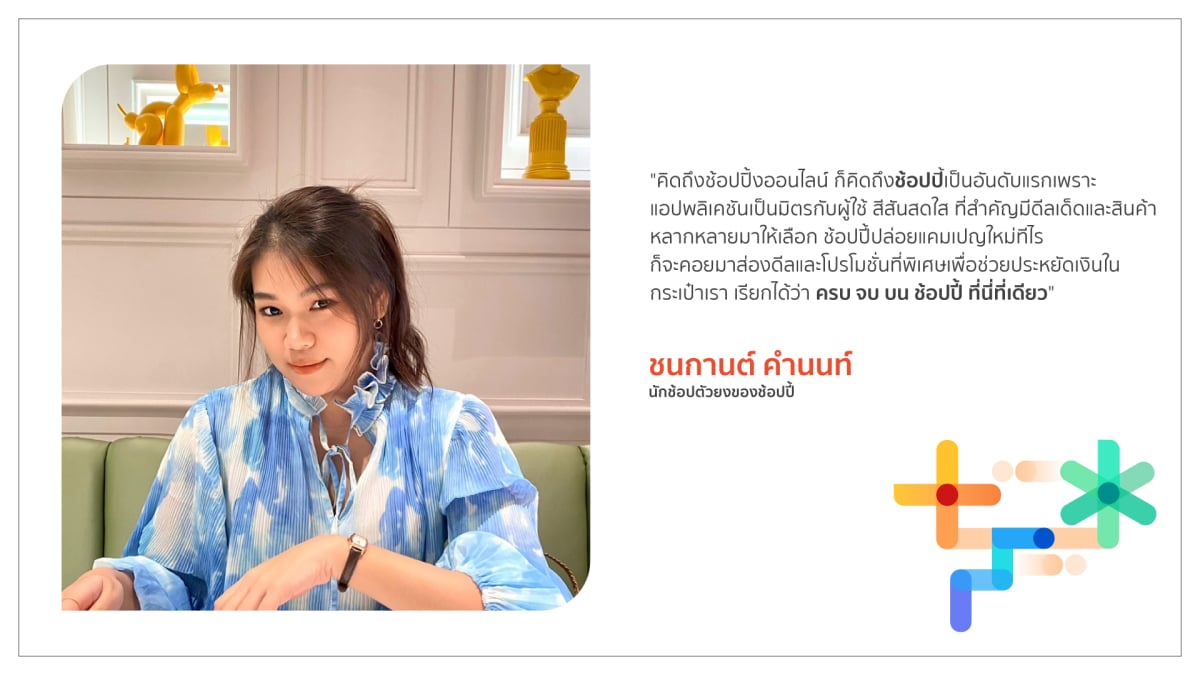 ชนกานต์ คำนนท์ นักช้อปตัวยงของช้อปปี้ที่ใช้งานแอปฯมาตั้งแต่ปี 2562 กล่าวว่า “ถ้าพูดถึงแอปช้อปปิ้งออนไลน์ ก็จะนึกถึงช้อปปี้เป็นอันดับแรกเพราะเป็นแอปที่มีความสดใส ใช้งานง่ายและเป็นมิตรกับผู้ใช้ ที่สำคัญยังมีดีลเด็ดและสินค้าหลากหลาย เวลาช้อปปี้ปล่อยแคมเปญใหม่ทีไร ก็จะคอยมาดูดีลและโปรโมชันที่พิเศษกว่าเดิมจากช้อปปี้ ร้านค้าและแบรนด์พันธมิตร เพื่อประหยัดเงินขึ้นอีก อีกอย่างคือช้อปปี้มีบริการชำระเงินที่สะดวกอย่าง ShopeePay รวมถึงยังมีฟีเจอร์ SpayLater ซึ่งอำนวยความสะดวกด้านการผ่อนชำระได้ดีมาก