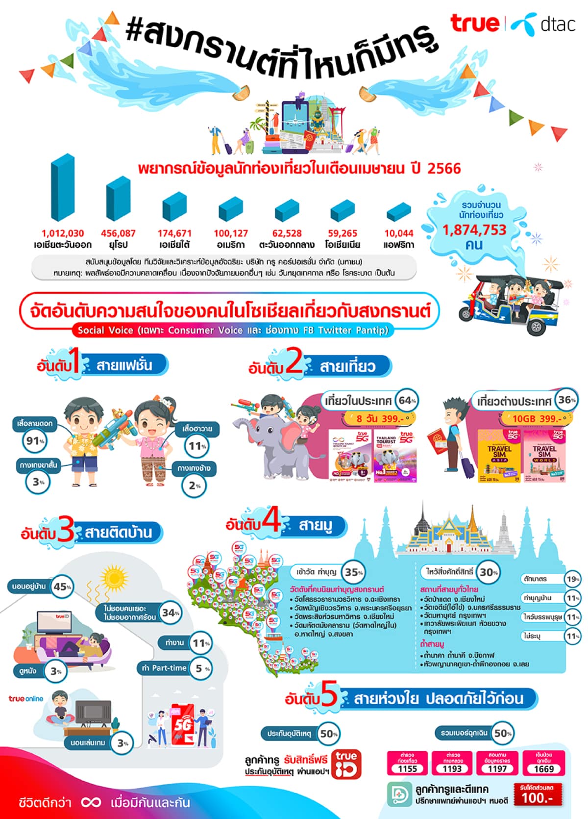 ทั้งหมดนี้คืออินไซต์ของข้อมูลที่น่าสนใจ และเทรนด์สุดฮิตที่มาแรงในสงกรานต์ปีนี้ ที่ทรู พร้อมมอบความสุขให้ทุกไลฟ์สไตล์ ซึ่งไม่ว่าคุณจะสนุกกับกิจกรรมใด ขอให้มั่นใจได้ว่า #สงกรานต์ที่ไหนก็มีทรู