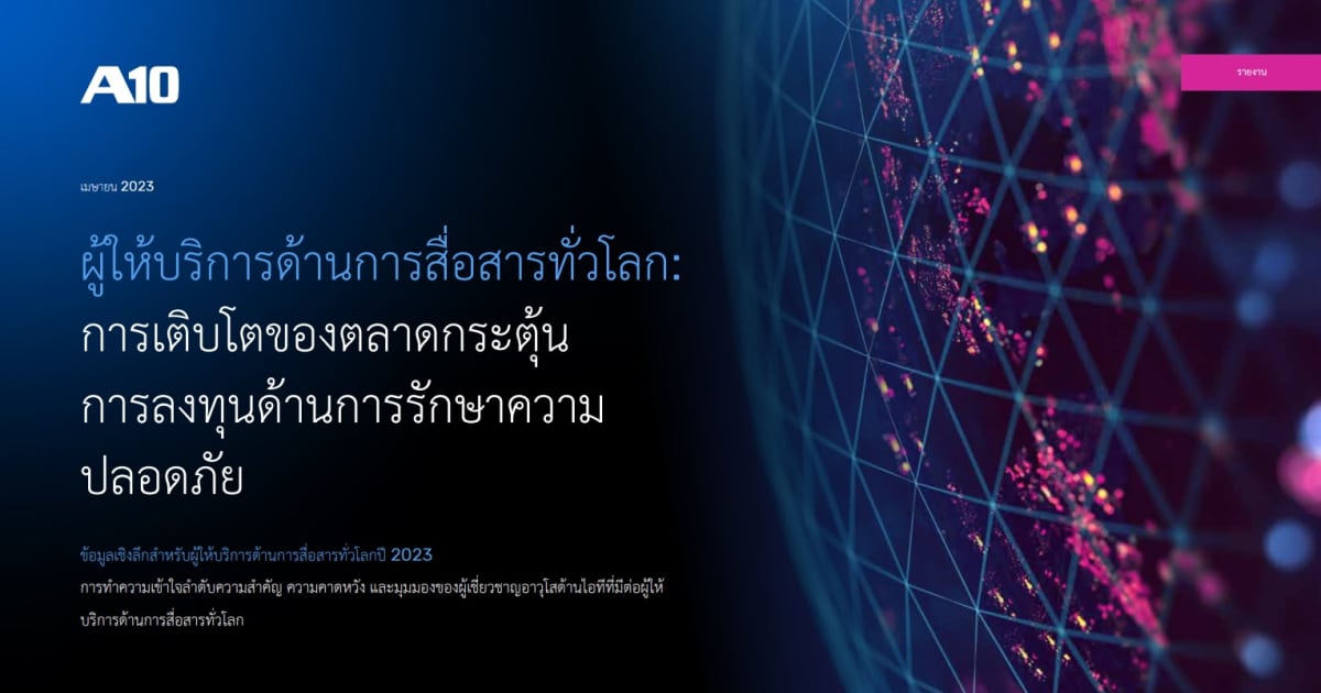 A10 Networks เผยผลวิจัย พบว่าตลาดของผู้ให้บริการด้าน การสื่อสาร ทั่วโลก เติบโตสูง นำไปสู่การกระตุ้นการลงทุนด้านความปลอดภัยของเครือข่าย