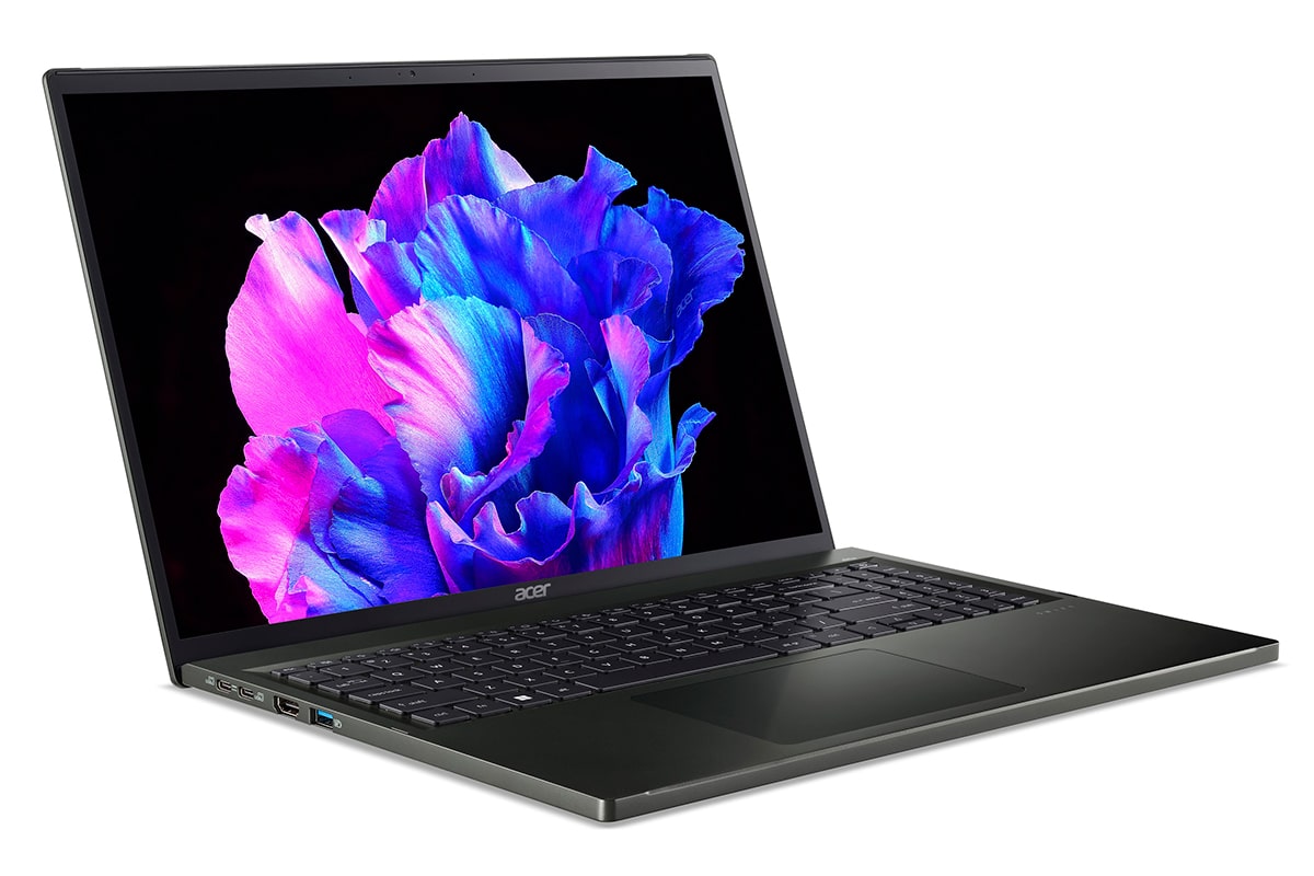 ด้วยดีไซน์ที่สะดุดตาและการแสดงผลที่คมชัด สีสันสดใส ทำให้ทุกการพกพาเต็มไปด้วยความมั่นใจ ตัวเครื่องของ Acer Swift Edge 16 ผลิตจากวัสดุแมกนีเซียมอัลลอยที่บางเพียง 12.95 มิลลิเมตร และมีน้ำหนักเพียง 1.23 กก. เคลือบด้วยสีดำ Olivine ล้ำสมัย ดื่มด่ำกับการรับชมด้วยมาตรฐานระดับโรงภาพยนตร์จากจอแสดงผล OLED ขนาด 16 นิ้ว ความละเอียด 3.2K 2K (3200 x 2000) อัตราการรีเฟรช 120 Hz ให้ขอบเขตสี DCI-P3 100% เวลาตอบสนอง 0.2 มิลลิวินาที ร่วมกับอัตราความคมชัด 1,000,000:1 ความสว่างสูงสุด 500 nits พร้อมกับการรับรอง VESA DisplayHDR True Black 500 ให้ความคมชัดสูงและสีสันที่แม่นยำ หน้าจอได้รับการรับรอง TÜV Rheinland Eyesafe® ช่วยลดการสะท้อนแสงสีฟ้าเพื่อความสบายตาระหว่างการงานที่ยาวนาน