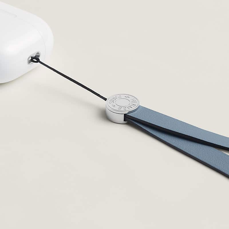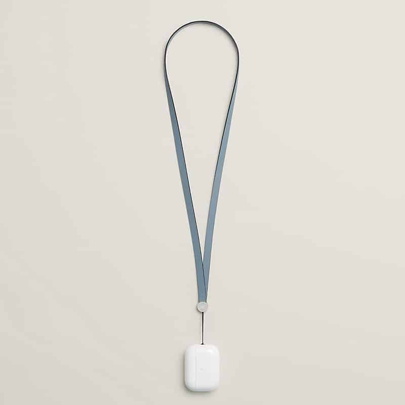 พร้อมกันนี้ Hermès ยังออกสายคล้องหนังแบบใหม่สำหรับ AirPods ด้วยเช่นกัน โดยตัวสายคล้องจะเป็นเชือกเส้นเล็ก ส่วนสายหนังจะมีตอกด้วยตะปูอานทองเหลืองชุปแพลเลเดียม ในสีที่เข้ากับกับเคสหนัง แต่ว่าสายคล้องนี้จะใช้ได้กับ AirPods Pro รุ่นที่ 2 เท่านั้น