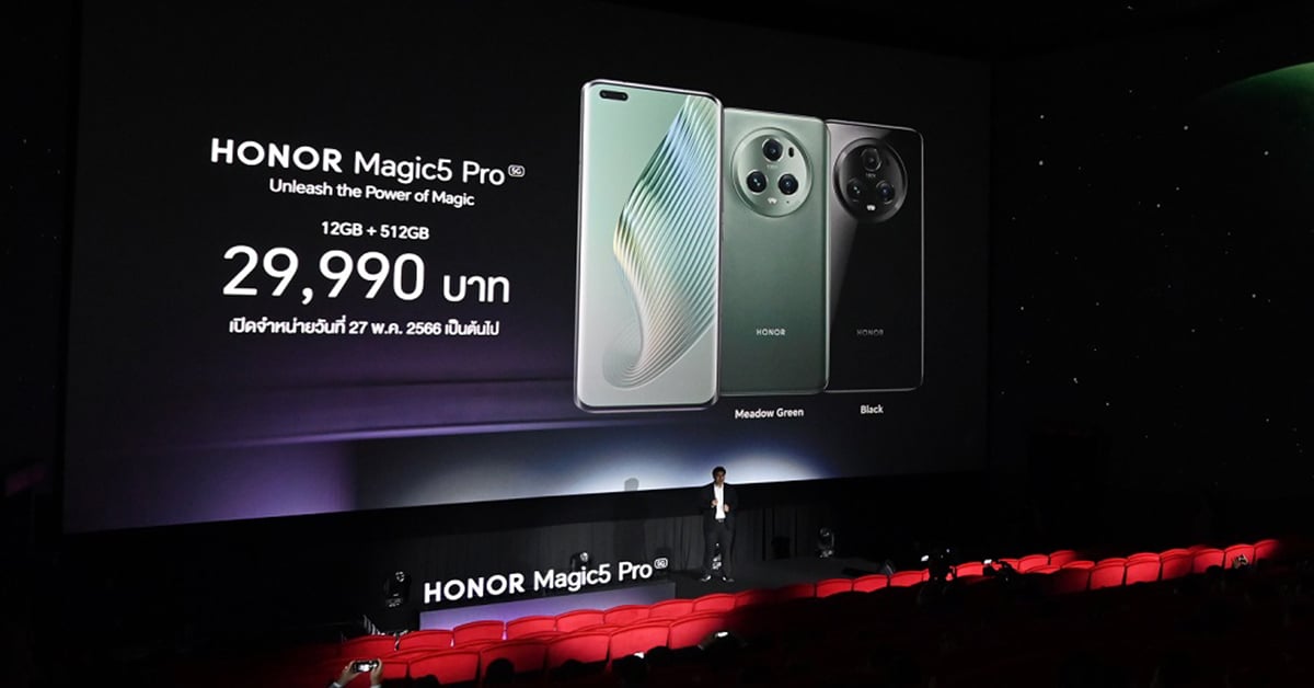 เปิดตัว HONOR Magic5 Pro 5G สมาร์ทโฟนเรือธงการันตีรางวัล จัดเต็มกล้องระดับท็อป มาใน ราคา 29,990 บาท พร้อมโปรโมชันสุดคุ้ม วางจำหน่ายตั้งแต่วันที่ 27 พฤษภาคม นี้