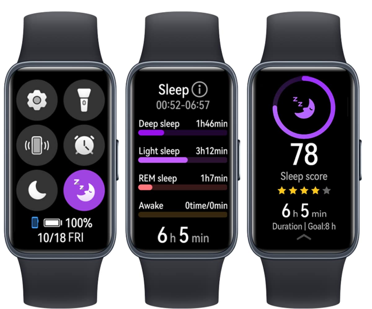 สมาร์ทแบนด์จะปลุกคุณอย่างนุ่มนวล โดยไม่ต้องกังวลว่าเสียงนาฬิกาปลุกโทรศัพท์จะดังรบกวนเพื่อนร่วมห้อง นาฬิกาปลุกยังมีตัวเลือกการงีบหลับที่ช่วยให้คุณนอนหลับต่อได้อีก 10 นาที ด้วยการสัมผัส ตอบสนองความต้องการของคุณในการนอนนานขึ้น ทุกเช้าเมื่อคุณตื่นขึ้น รายงานการนอนหลับทางวิทยาศาสตร์จากคืนก่อนหน้าจะพร้อมใช้งานโดยการยกข้อมือขึ้น หรือเข้าไปที่แอป HUAWEI Health ซึ่งคุณจะสามารถตรวจสอบคุณภาพการนอนได้อย่างลึกซึ้งยิ่งขึ้น