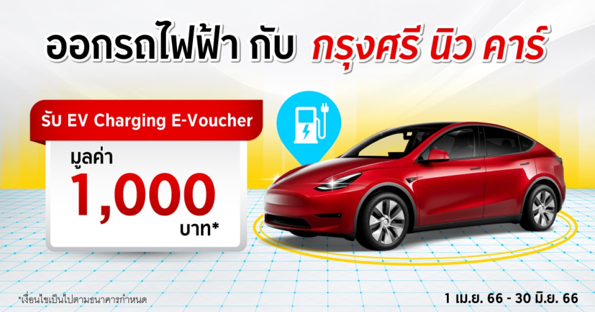 “กรุงศรี ออโต้” ผู้นำธุรกิจสินเชื่อยานยนต์ครบวงจร เครือธนาคารกรุงศรีอยุธยา จำกัด (มหาชน) ส่งแคมเปญกระตุ้นตลาดอีวี เอาใจผู้ที่สนใจ ออกรถยนต์ไฟฟ้า กับสินเชื่อ “กรุงศรี นิว คาร์” มอบ EV Charging E-Voucher วงเงินค่าบริการชาร์จไฟฟ้าผ่าน EA Anywhere มูลค่า 1,000 บาท บนแอปพลิเคชัน GO by Krungsri Auto ให้กับลูกค้ากรุงศรี ออโต้ ที่สมัครสินเชื่อ “กรุงศรี นิว คาร์” เพื่อเป็นเจ้าของรถยนต์ไฟฟ้า ผ่านแพลตฟอร์มดิจิทัล หรือสาขากรุงศรี ออโต้ รวมถึงผู้แทนจำหน่ายแบรนด์รถยนต์ไฟฟ้าทั่วประเทศ* ระหว่างวันที่ 1 เมษายน 2566 – 30 มิถุนายน 2566