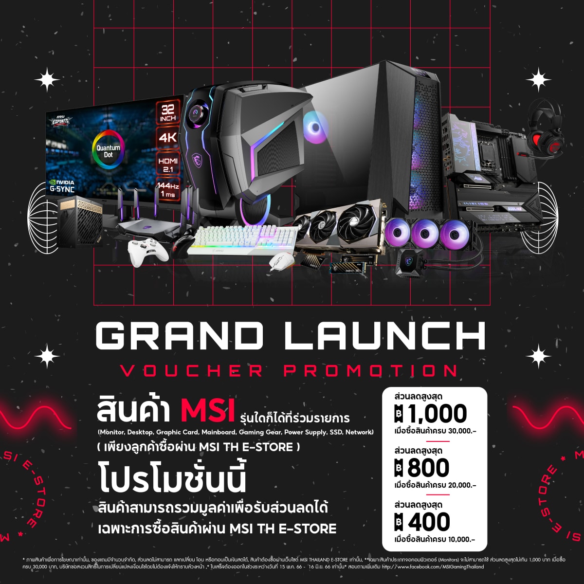 MSI ส่ง โปรโมชัน Grand Launch ต้อนรับการเปิดตัวอย่างเป็นทางการของ MSI THAILAND E-STORE วันที่ 15 พฤษภาคม 2566 – 16 มิถุนายน 2566