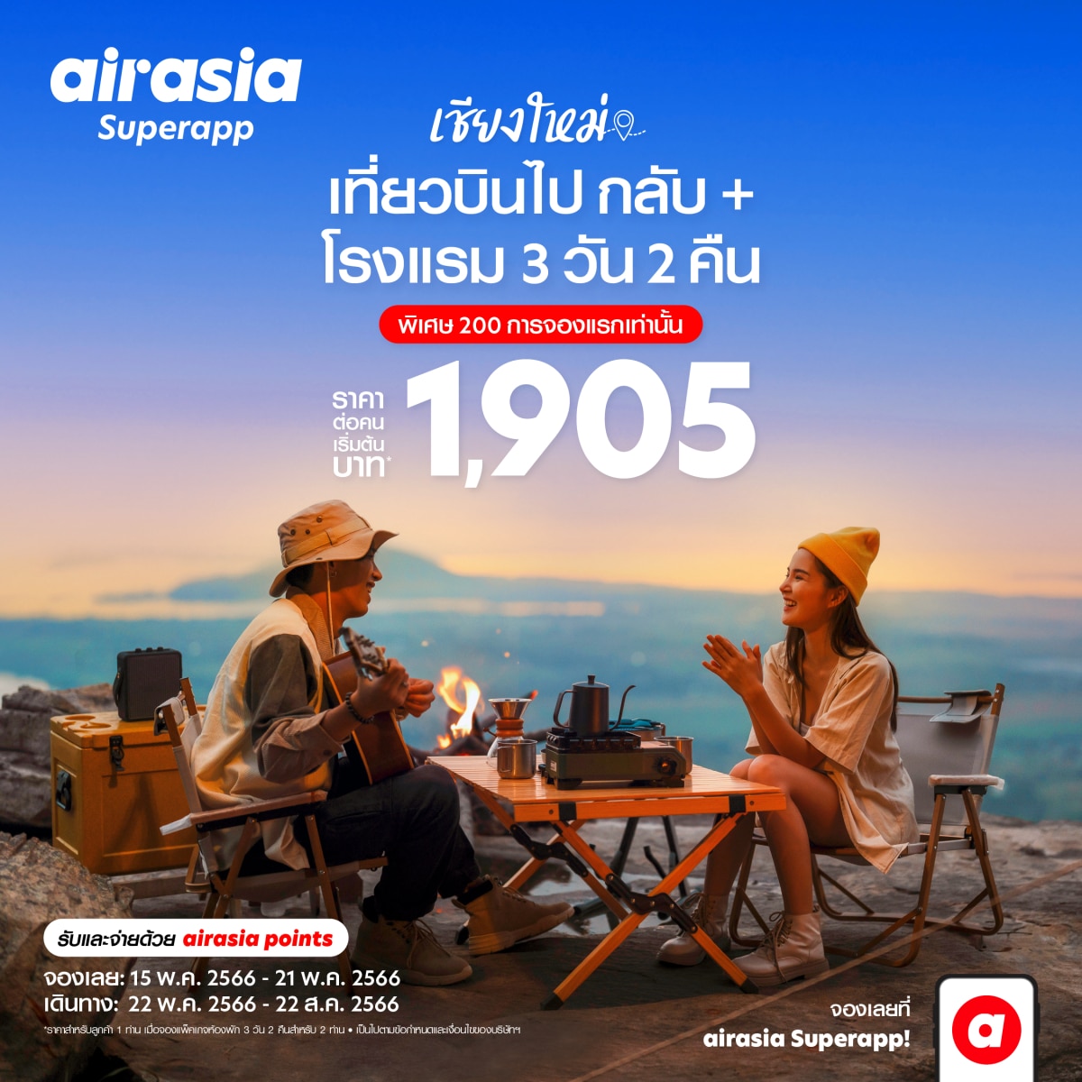 airasia Superapp เสนอดีล “เที่ยวบินพร้อมที่พัก” ในราคาสุดคุ้ม เที่ยว เชียงใหม่ 3 วัน 2 คืน เริ่ม 1,905 บาท* ต่อท่าน เลือกปลายทางสุดฮิตที่ใช่ ทั้งในและต่างประเทศ เพียงคลิกบริการ SNAP