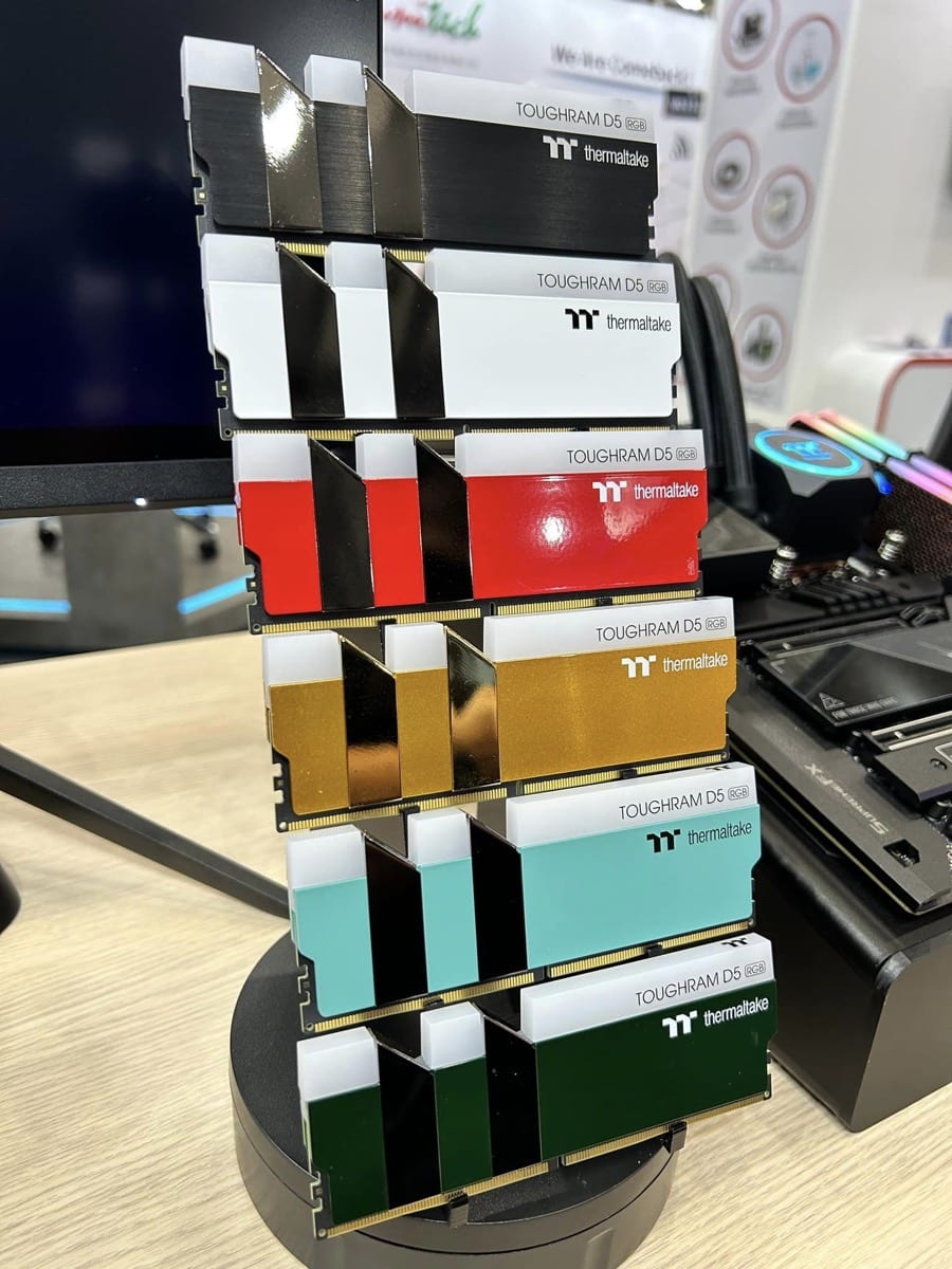 TT Toughram แรม DDR5 บัสใหม่ล่าสุด Bus 6600 และ Bus 7600 ดีไซน์สวยตามสไตล์ TT มีสีสันให้เลือกมากมาย หรือสายไฟ RGB ก็มี เตรียมขายในไทยเร็วๆ นี้