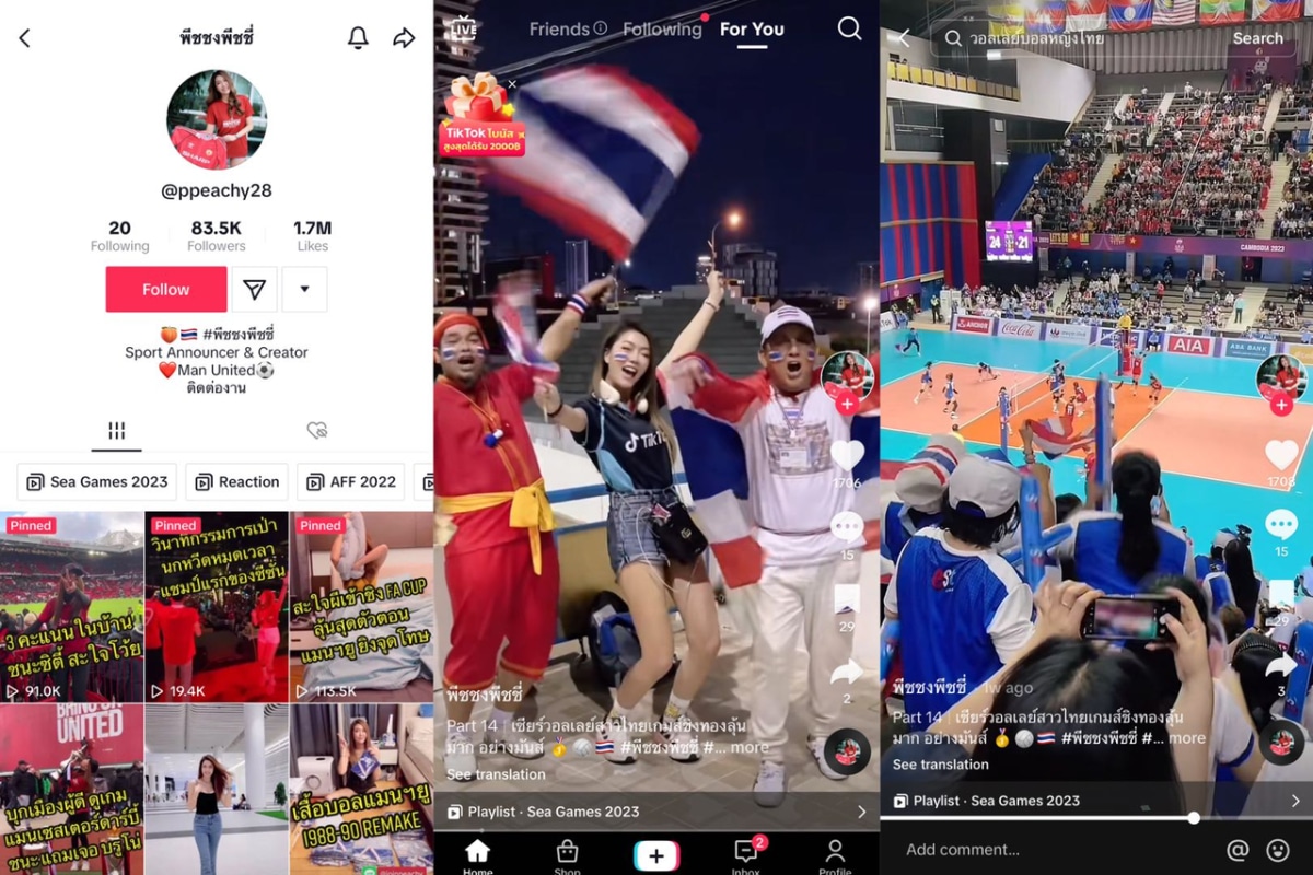 พีชชี่ วรันธร (ppeachy28) ผู้ประกาศข่าวกีฬาและครีเอเตอร์กีฬาสาวสวยขวัญใจแฟน ๆ สายกีฬาบน TikTok ผู้ซึ่งหยิบยกเรื่องราวน่าสนใจของแวดวงกีฬามาเล่าในสไตล์ของตน ในฐานะตัวแทนคนไทยที่ได้ไปเชียร์กีฬาวอลเลย์บอลรอบชิงชนะเลิศในการแข่งขันซีเกมส์ครั้งที่ 32 ติดขอบสนามเป็นครั้งแรก เธอได้เล่าว่าเธอได้ถ่ายทอดบรรยากาศและประสบการณ์ทุกอย่างบน TikTok ผ่านมุมมองของเธอเพื่อให้ผู้ติดตามได้เห็นมุมมองที่มากกว่าการถ่ายทอดสดแบบปกติ ไม่ว่าจะเป็นบรรยากาศสนามแข่งขันต่าง ๆ การวอร์มเตรียมตัวของเหล่านักกีฬา ความคึกคักของกองเชียร์ไทย ตลอดจนโมเมนต์ที่นักกีฬากล่าวขอบคุณหลังจบการแข่งขัน ที่เธอได้เห็นและสัมผัสได้จริง บรรยากาศทั้งหมดล้วนมีความน่าสนใจและเสน่ห์จากความเรียล และสิ่งนี้เองที่พีชชี่เรียกได้ว่าเป็นหนึ่งในเคล็ดลับที่จะทำให้ผู้ชมอินไปกับการเชียร์กีฬาด้วยกันมากยิ่งขึ้น