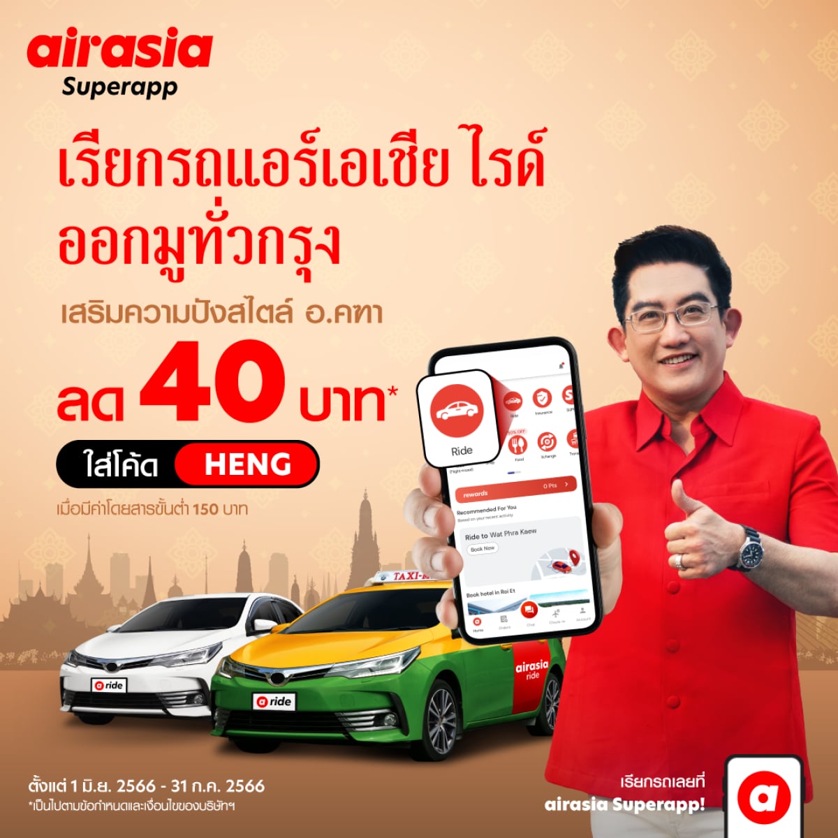airasia ride จับมือ อาจารย์คฑา ชวน สายมู เรียกรถแอร์เอเชีย ไรด์เปิดลายแทงไหว้พระ 9 วัด เสริมดวงให้ปังทุกด้านรับครึ่งปีหลัง