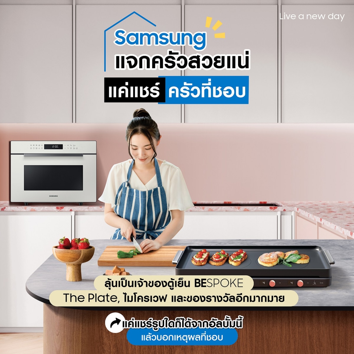นอกจากจุดประกายเสนอไอเดียห้องครัวในฝัน ซัมซุงจัดแคมเปญเอาใจคนรักบ้านกับ “ซัมซุง แจกครัวสวยแน่ แค่แชร์ครัวที่ชอบ” แชร์รูปครัวในสไตล์ที่คุณชอบ…รูปใดก็ได้จากอัลบั้มนี้ พร้อมเหตุผลที่ชอบ แชร์ปั๊บ…รับ Code ส่วนลด 10% จากราคาผลิตภัณฑ์ตู้เย็นกลุ่ม BESPOKE ที่แสดงบนเว็บไซต์ Samsung.com ลดสูงสุด 1,000 บาท และยังอาจมีสิทธิ์รับรางวัลพิเศษอีก #100รางวัล ให้คุณได้แต่งครัว #สวยให้สุดทุกองศา โดยโชคดีจะได้รับ