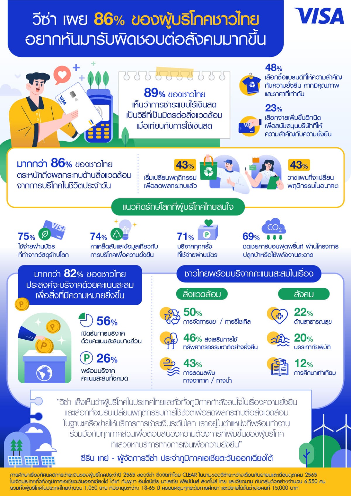 Visa เผยผลการศึกษา 86% ของ ผู้บริโภค ชาว ไทย เริ่มหันมารับผิดชอบต่อสังคมมากขึ้น ปรับเปลี่ยนพฤติกรรมเพื่อลดผลกระทบต่อสิ่งแวดล้อม