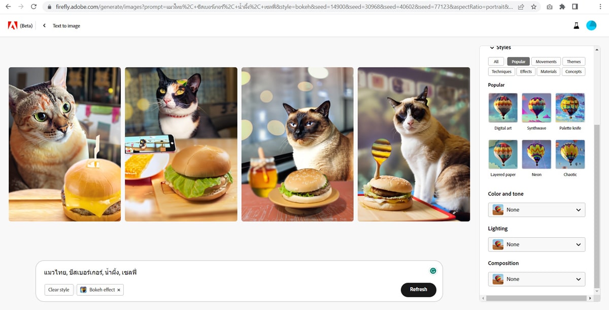Adobe Firefly เครื่องมือ Generative AI วันนี้รองรับการสั่งงาน text Prompt ภาษาไทย รวมถึงภาษาอื่นๆ มากกว่า 100 ภาษา บนเวอร์ชั่นเว็บสแตนด์อโลน ให้ผู้ใช้สามารถสร้างภาพคุณภาพสูงได้อย่างสร้างสรรค์อย่างที่ต้องการ พร้อมเอฟเฟ็กต์ข้อความที่สวยงาม สามารถใช้งานได้แล้ววันนี้ ที่หน้าเว็บ firefly.adobe.com/