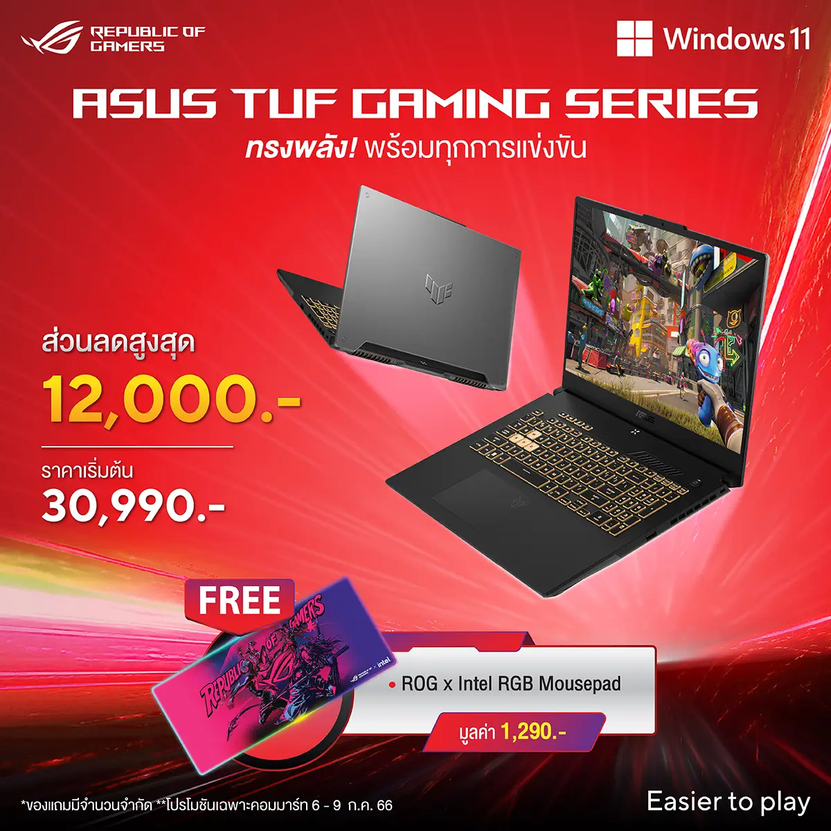 - ซื้อ ASUS TUF Gaming F15/F17 รุ่นใดก็ได้ รับฟรี ROG x Intel RGB Mousepad มูลค่า 1,290 บาท