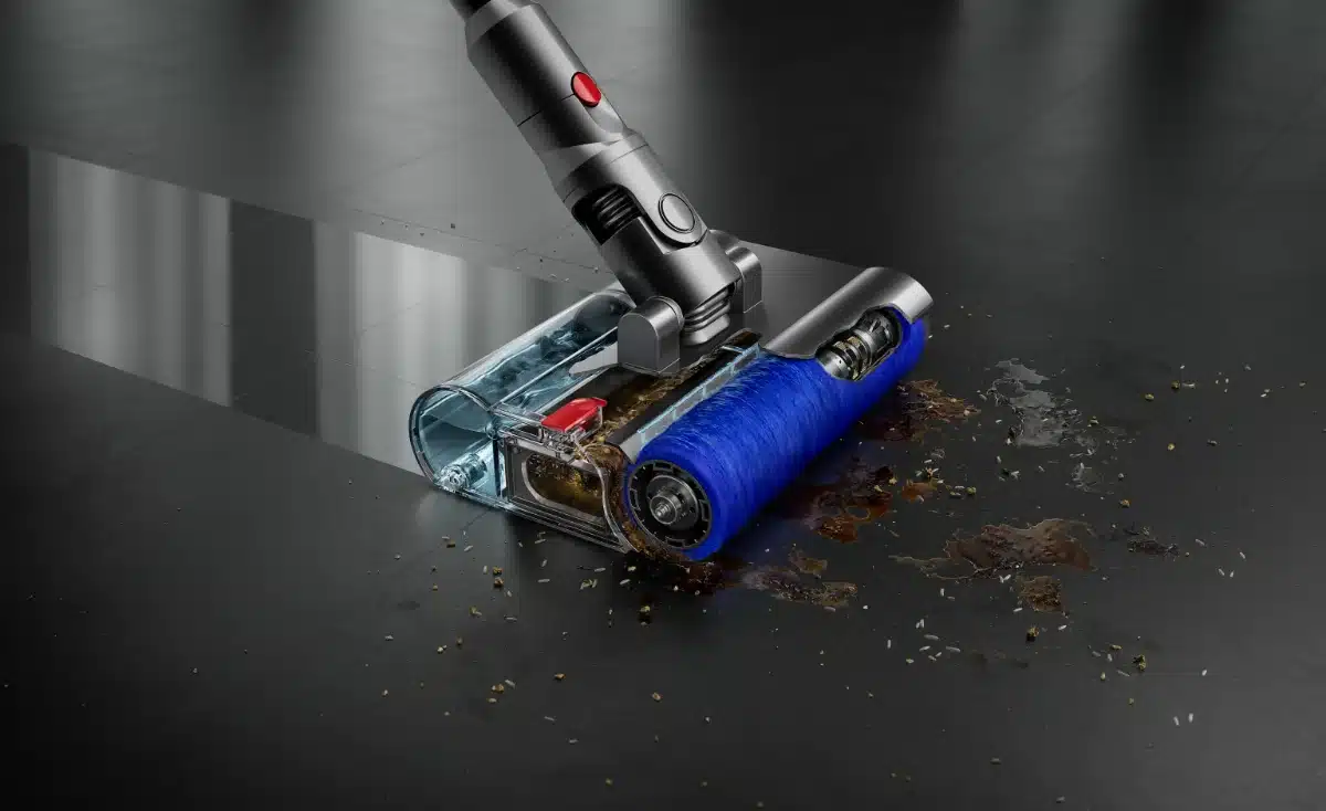 ตัวหัวดูดลูกกลิ้งแบบเปียก Dyson Submarine ได้รับการออกแบบทางวิศวกรรมที่แม่นยำเพื่อทำความสะอาดด้วยน้ำที่หยดลงบนลูกกลิ้งเพื่อขจัดสิ่งสกปรก คราบฝังแน่น และเศษขยะชิ้นเล็กอย่างเศษอาหารได้อย่างมีประสิทธิภาพ