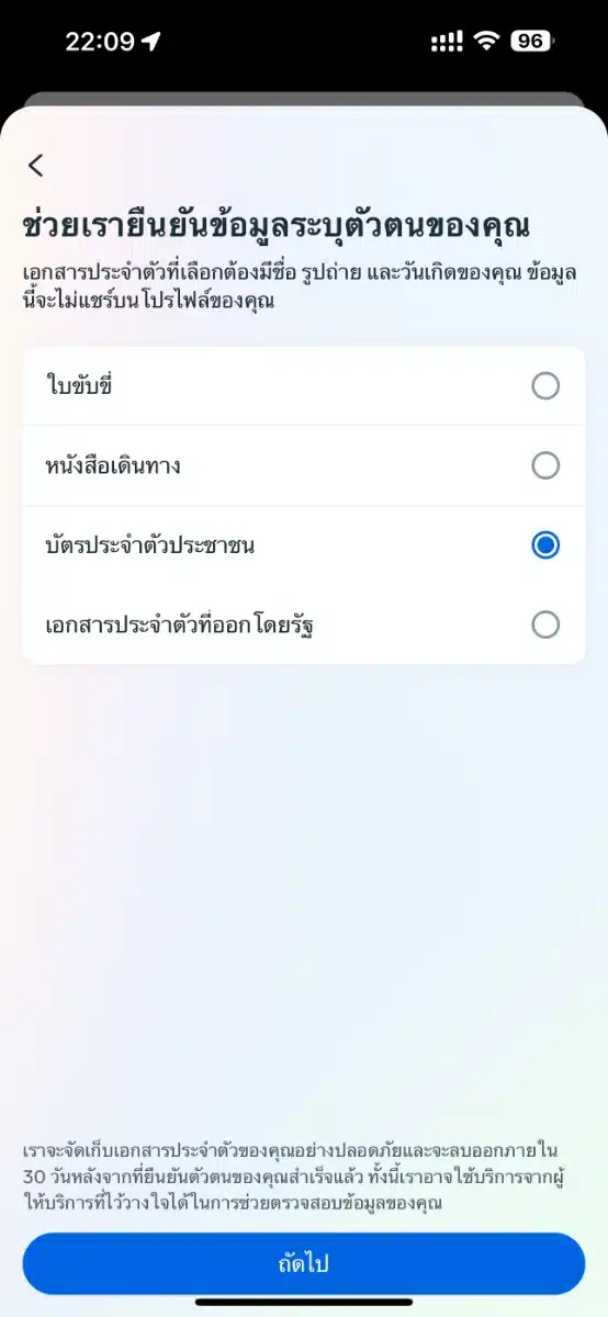 - ชื่อที่คุณใช้บน Facebook จะต้องตรงกับในบัตรด้วย ใครที่ตั้งชื่อเล่นหรือชื่อแปลกๆ จะไม่สามารถยืนยันตัวได้ และภาพโปรไฟล์ก็จะต้องเป็นภาพที่เห็นใบหน้าของคุณได้ชัดเจน