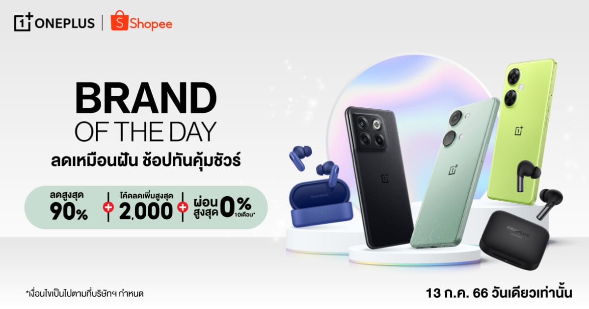 OnePlus ส่ง โปรโมชัน จัดหนักจัดเต็มกลางปี ใน Brand of The Day ให้คุณได้เป็นเจ้าของสมาร์ทโฟนและอุปกรณ์เสริม ลดสูงสุด 90% พร้อมโค้ดลดสูงสุด 2,000 บาท ใน OnePlus Flagship Store ที่ Shopee วันที่ 13 กรกฎาคมนี้ วันเดียวเท่านั้น!