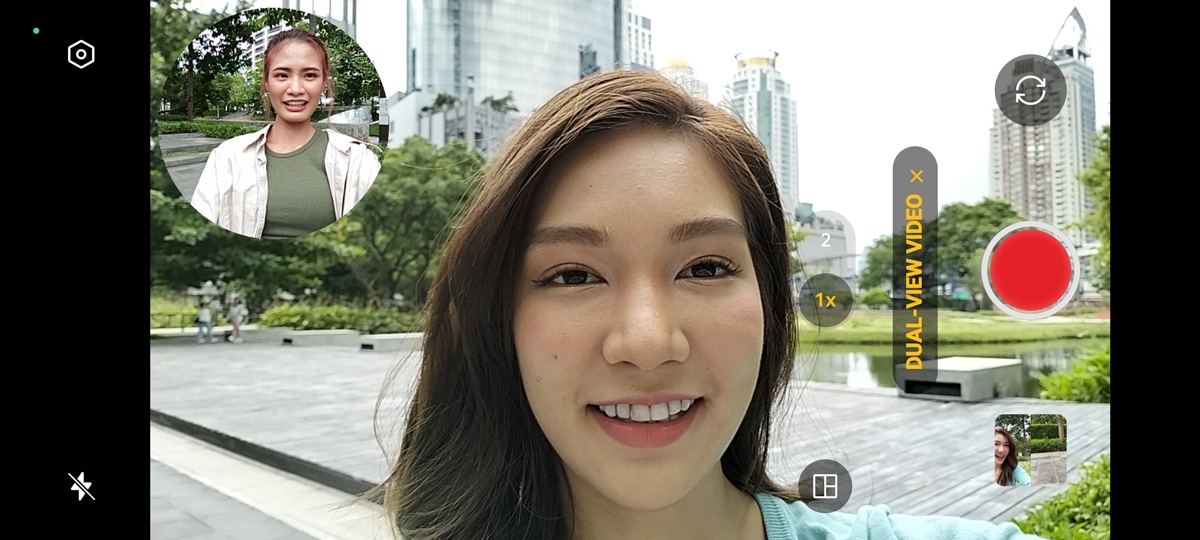 การถ่ายวิดีโอมีลูกเล่น Dual-View Video สำหรับคนที่ชอบถ่าย Vlog ให้คุณเก็บภาพวิดีโอจากกล้องหน้าและกล้องหลังได้พร้อมกันในเฟรมเดียว เลือกได้ทั้งแบบแบ่งครึ่งจอหรือ PIP ซ้อนจอกัน เพื่อให้การเล่าเรื่องราวน่าสนใจมากขึ้น
