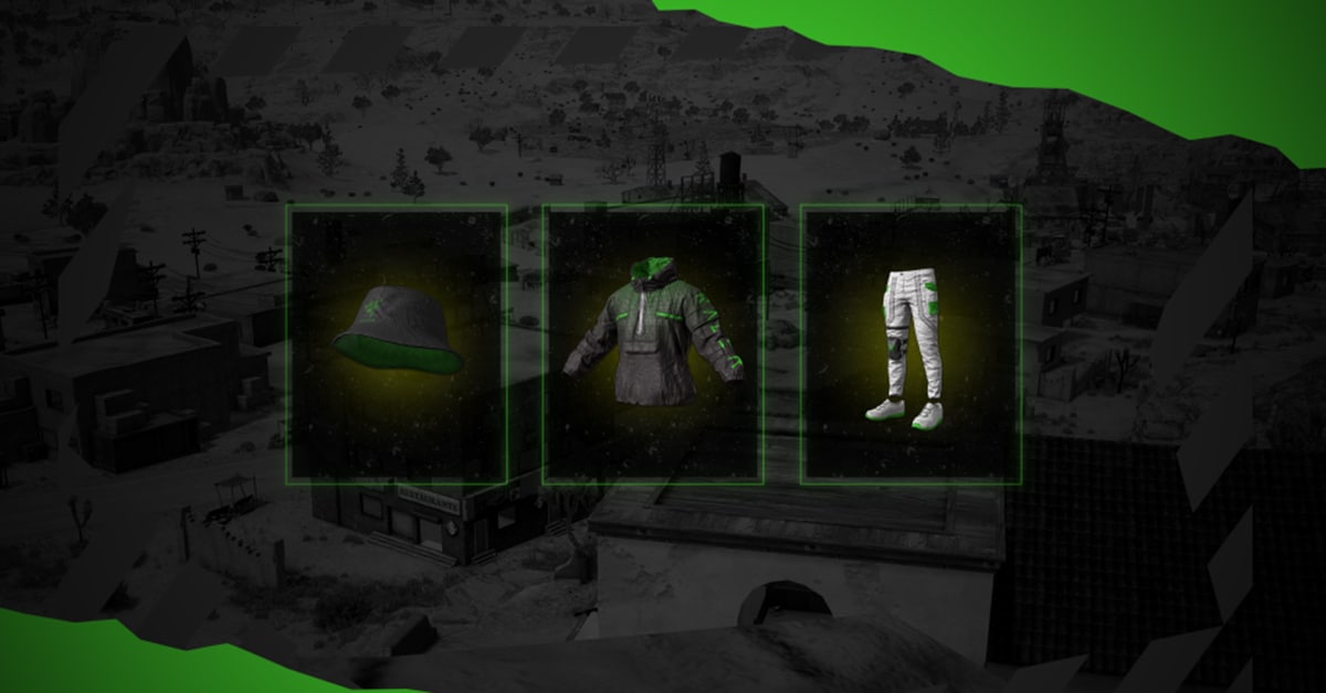 โบนัสสุดพิเศษ ผลิตภัณฑ์ทุกชิ้นในคอลเลกชันจะมาพร้อมกับเนื้อหาในเกมที่ปรับแต่งมาสำหรับผู้ที่ชื่นชอบ PUBG: BATTLEGROUNDS ผู้เล่นสามารถแลกรับไอเทมพิเศษในเกมสำหรับ PUBG: BATTLEGROUNDS โดยใช้รหัสแลกรับในกล่อง ไอเท็มในเกมเหล่านี้จะช่วยให้เกมเมอร์สวมเสื้อผ้าในตู้เสื้อผ้าธีม Razer เต็มรูปแบบ ไม่ว่าจะเป็นหมวก แจ็กเก็ต กางเกง และรองเท้า