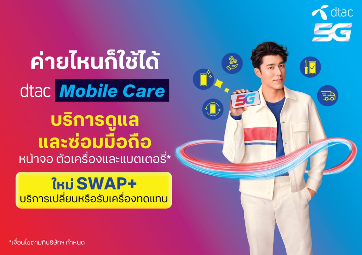 SWAP+ บริการ ใหม่จาก dtac Mobile Care ให้คุณอุ่นใจคลายกังวลยาม มือถือ ตกแตก เปียกพัง เปลี่ยนหรือรับเครื่องทดแทน สำหรับลูกค้าดีแทคโดยเฉพาะ