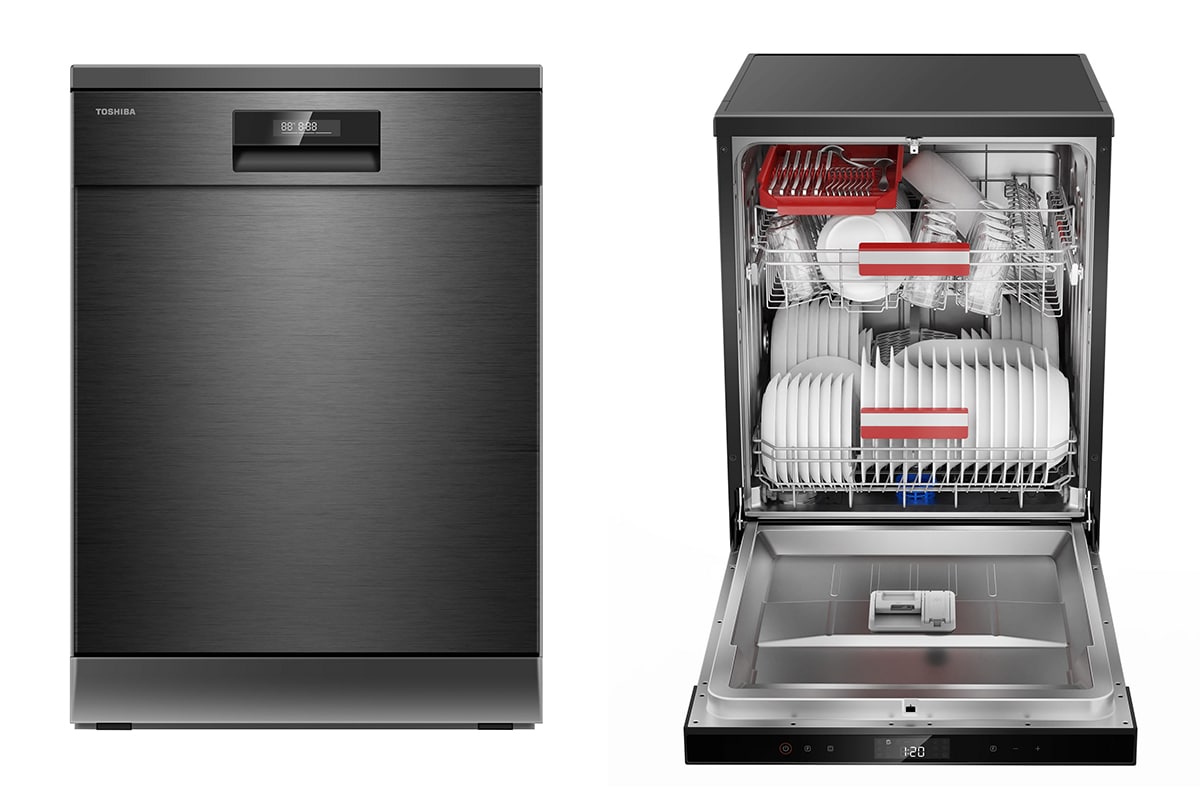 TOSHIBA แนะนำ เครื่องล้างจานอัตโนมัติ ประเภทตั้งพื้นรุ่น DW-14F2(BS)-TH สามารถรองรับภาชนะและอุปกรณ์ครัวที่หลากหลายได้ถึง 14 ชุดจาน (162 ชิ้น) สามารถล้างด้วยน้ำอุณหภูมิสูงถึง 70°C ยับยั้งกลิ่น เชื้อโรคสะสม ด้วยเทคโนโลยี UV-LED มั่นใจเรื่องความสะอาด ได้รับการออกแบบให้มีหัวฉีดน้ำ ทำความสะอาดทั้งด้านบนและด้านล่างทำงานร่วมกัน เพื่อการทำความสะอาดได้ทั่วถึงทุกซอกทุกมุม โดยใช้ปริมาณน้ำและพลังงานที่น้อยกว่ามีฟังก์ชันอบแห้งแบบ Turbo dry ให้ภาชนะแห้งเร็วขึ้น ประหยัดน้ำด้วยระบบล้างน้ำแบบหมุนเวียน แผงควบคุมออกแบบสวยงาม หน้าจอ LED ซ่อนเมนูที่บนขอบประตูด้านใน ป้องกันการกดของเด็ก และยังประหยัดน้ำกว่าการล้างภาชนะแบบปกติถึง 85%