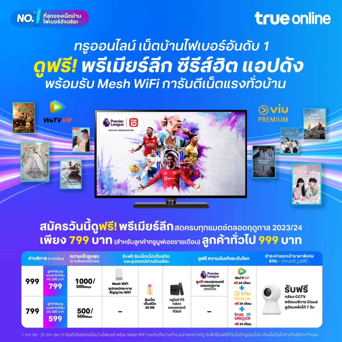 TrueOnline มอบความคุ้มค่าผ่าน โปรโมชัน เน็ตบ้าน ไฟเบอร์ จากดูฟรี พรีเมียร์ลีก ซีรีส์ฮิต แอปดัง พร้อมรับ Mesh Wi-Fi การันตี เน็ตแรงทั่วบ้าน