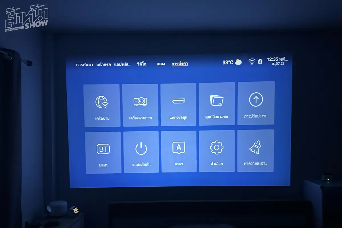 เมื่อเปิดเครื่องใช้งานหลังจากที่ Wanbo T2 Max New บูตเสร็จเรียบร้อย ตัวเครื่องจะทำการปรับระยะโฟกัสอัตโนมัติให้ทันที ถือว่าสะดวกดีเพราะไม่ต้องปรับตั้งเอง ส่วนการปรับขนาดความเอียงแบบคางหมู เราจะไปเลือกให้ปรับอัตโนมัติก็ได้ แต่ส่วนตัวที่ลองใช้ เลือกปรับ manual เอาเองจะได้มุมองศาของจอที่น่าพอใจมากกว่า
