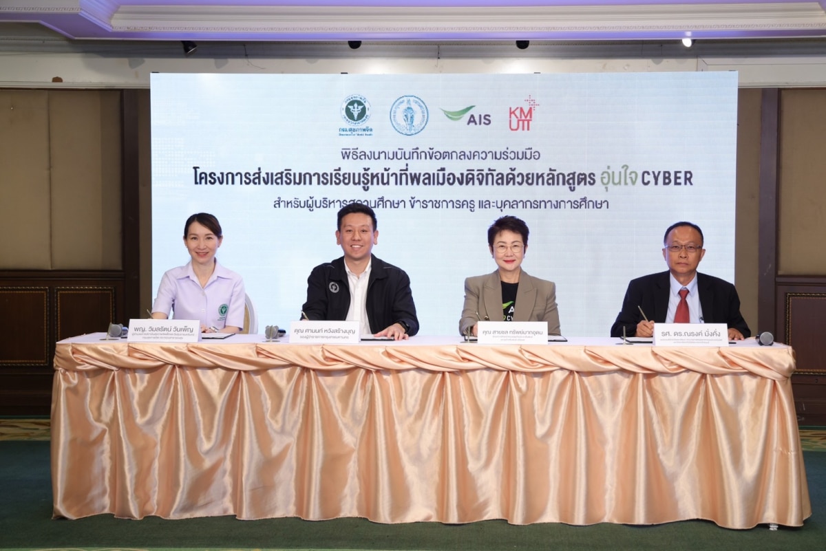 กรุงเทพมหานครฯ จับมือ AIS และภาคีเครือข่ายภาครัฐ ทั้งกรมสุขภาพจิต กระทรวงสาธารณสุข และมหาวิทยาลัยเทคโนโลยีพระจอมเกล้าธนบุรี ขยายผลหลักสูตรการเรียนรู้ด้านทักษะ ดิจิทัล “หลักสูตร อุ่นใจไซเบอร์ ยกระดับการศึกษายุคดิจิทัลในการสร้างภูมิคุ้มกันภัยไซเบอร์ ส่งต่อความรู้ให้แก่ครู บุคลากรทางการศึกษาและนักเรียนในโรงเรียสังกัด กทม. ทั้ง 437 แห่ง ที่มีทั้งบุคลากรทางการศึกษาและนักเรียนรวมมากกว่า 250,000 คน