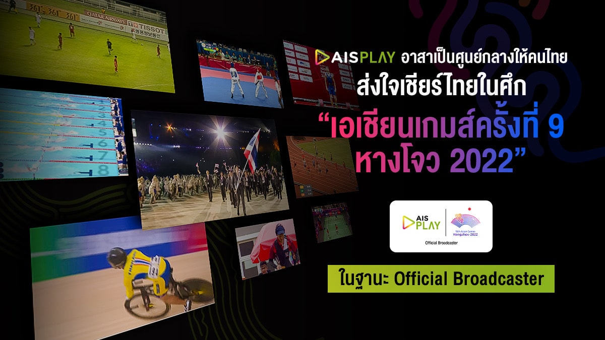 AIS PLAY ตอกย้ำศูนย์กลางการรับชมสุดยอดคอนเทนต์กีฬาเพื่อคนไทย อาสาทำหน้าที่ครั้งสำคัญให้คนไทยได้ส่งแรงใจเชียร์นักกีฬาไทย ในฐานะ Official Broadcaster สำหรับ IPTV และ OTT อย่างเป็นทางการรายเดียวในไทย กับ มหกรรมกีฬาแห่งทวีปเอเชีย “เอเชียนเกมส์ ครั้งที่ 19 หางโจว 2022” พร้อมยิง สด การแข่งขันจาก เมืองหางโจว สาธารณรัฐประชาชนจีน