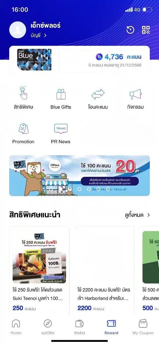 แอปพลิเคชัน xplORe ให้คุณใช้จ่ายสะดวกกว่าเดิม เชื่อมต่อ e-Wallet เพื่อเติมเงินหรือผูกบัตรเครดิตแล้วสแกนจ่ายได้เลย ทั้งผ่านร้านค้าในเครือ OR และร้านค้า Thai QR พร้อมรับดีลส่วนลดและสิทธิพิเศษ สะสมคะแนน Blue Card ทุกการใช้จ่ายจากการซื้อสินค้าบนแอปพลิเคชัน หรือจากร้านค้าในเครือ OR และนำคะแนนสะสมมาแลกรับสิทธิพิเศษ ของรางวัล และร่วมลุ้นสนุกกับกิจกรรมต่าง ๆ