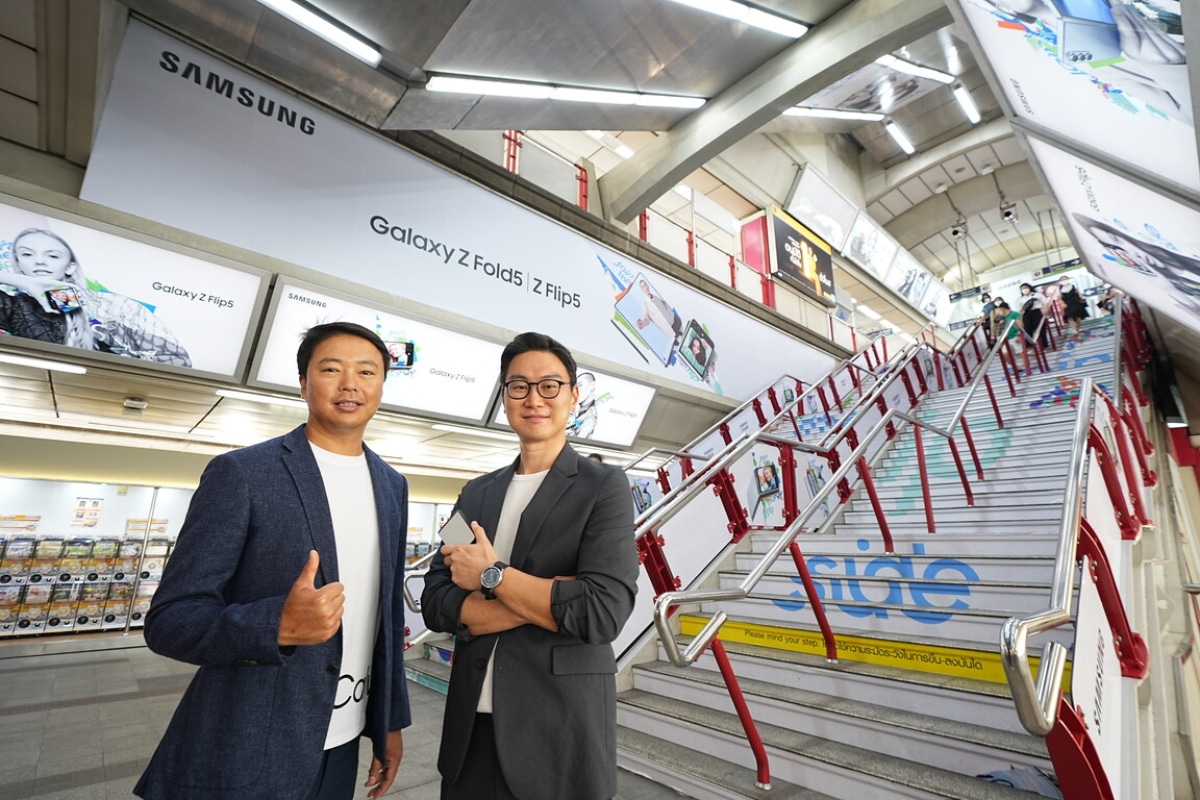 Samsung ผู้นำในกลุ่มสมาร์ทโฟนหน้าจอพับได้ นำโดยนายมาร์ค คิม ประธานองค์กร ธุรกิจโมบายล์ เอ็กซ์พีเรียนซ์ บริษัท ไทยซัมซุง อิเลคโทรนิคส์ จำกัด ร่วมกับนายเนลสัน เหลียง กรรมการผู้อำนวยการใหญ่ บริษัท วีจีไอ จำกัด (มหาชน) ผู้นำด้านการตลาด Offine-to-Online เปิดตัว “Galaxy Station” เทคโอเวอร์สถานีรถไฟฟ้าบีทีเอส สยาม อย่างยิ่งใหญ่ทั้งสถานี ยกระดับประสบการณ์การเดินทางแบบเดิม ๆ ให้สนุกกว่าเดิม ตั้งแต่ทางเข้า จุดสแกนบัตร บันได ป้ายสถานี ไปจนถึงขบวนรถทั้งด้านในและด้านนอก กับการแปลงโฉมสถานีรถไฟฟ้าที่เต็มไปด้วยนวัตกรรมและสีสันความสนุกสนานจาก Galaxy Z Flip5 และ Galaxy Z Fold5